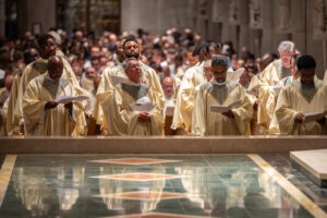 Baltimore Chrism Mass draws 1,200 to witness to ‘liberating power of God’ Christopher Gunty March 31, 2026 The five men who will be ordained to the priesthood in June each had a special role in the chrism Mass March 30 at the Cathedral of Mary Our Queen in Homeland. Three carried the oils that would be blessed in the Mass, one preached the Gospel and another assisted Archbishop William E. Lori at the altar.