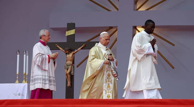 The Eucharist can ‘rekindle lost hope,’ Pope Leo says at Sunday Mass in Angola Courtney Mares April 19, 2026 Pope Leo XIV celebrated an outdoor Mass for an estimated 100,000 Catholics in Angola on Sunday, April 19, urging the faithful of a nation still bearing the scars of a decades-long civil war to find renewed hope in the Eucharist and the Risen Christ.
