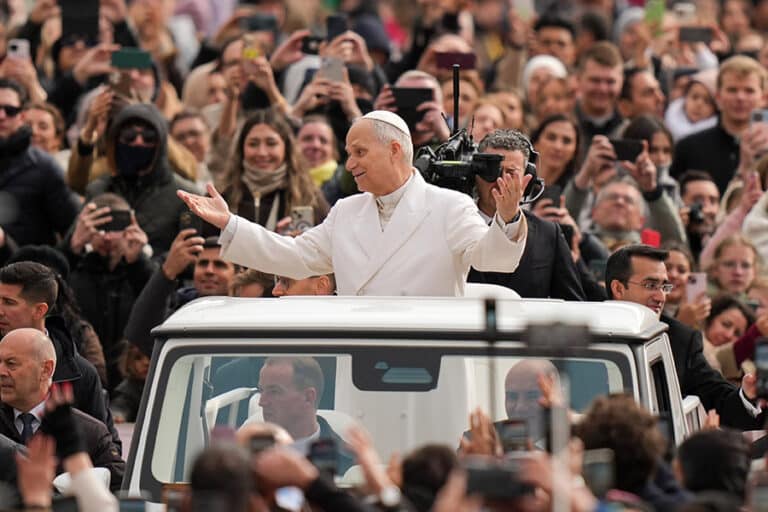 All Catholics share in Church’s mission, not just clergy, pope says April 1, 2026By Josephine Peterson Catholic News Service Filed Under: Feature, News, Vatican, World News VATICAN CITY (CNS) — Laypeople are not passive members but active participants in the Church’s mission, called to live and spread the Gospel in everyday life, Pope Leo XIV said. Continuing his series on the documents of the Second Vatican Council during his weekly general audience, the pope emphasized that all the baptized, not just the clergy, are missionary disciples of Christ. Pope Leo XIV greets visitors and pilgrims from the popemobile while riding around St. Peter’s Square at the Vatican before his weekly general audience April 1, 2026. (CNS photo/Lola Gomez) “For this reason, lay men and women are particularly called to carry Christ’s presence to all spheres of life and so transform them from within by bearing witness to the beauty of a life in Christ and the elevating power of his grace,” he said April 1 in his address to English-speakers. Pope Leo delved into the Dogmatic Constitution “Lumen Gentium,” saying that Vatican II shed light on the dignity of laypeople, after centuries of being defined as “simply as those who are not part of the clergy or the consecrated life.” “Before any distinction of ministry or state of life, the council affirms the equality of all the baptized,” the pope said. He said the People of God is not a “formless mass,” but the body of Christ, uniting clergy and laity. By being baptized, the laypeople “participate in the very priesthood of Christ,” he said. The pope also referenced St. John Paul II and Pope Francis, highlighting their emphasis on the active role of laypeople in the Church’s mission. He went on to say that the responsibility of laypeople is not confined to the Church, but rather includes the whole world. He said the world must be permeated by the spirit of Christ — something made possible through the “contribution, service and witness” of laypeople. “Indeed, the Church is present wherever her children profess and bear witness to the Gospel: in the workplace, in civil society and in all human relationships, wherever they, through their choices, show the beauty of Christian life, which foretells here and now the justice and peace that will be accomplished in the Kingdom of God,” he said. In his address to Arabic-speakers, the pope continued his calls for prayers for innocent victims of war, following weeks of condemning the ongoing conflicts in the Middle East. Read More Vatican News Pope urges Catholics to pray for priests in crisis Cultural trends and technology threaten contemplation, Cardinal Roche says Pope Leo XIV to carry cross at all 14 stations of Colosseum Way of the Cross 4 U.S. leaders named to Vatican dicastery that promotes Church’s humanitarian vision, work Pope Leo XIV introduces changes in Secretariat of State leadership ‘Lay down your weapons,” pope says in Palm Sunday call for peace Copyright © 2026 Catholic News Service/U.S. Conference of Catholic Bishops Print