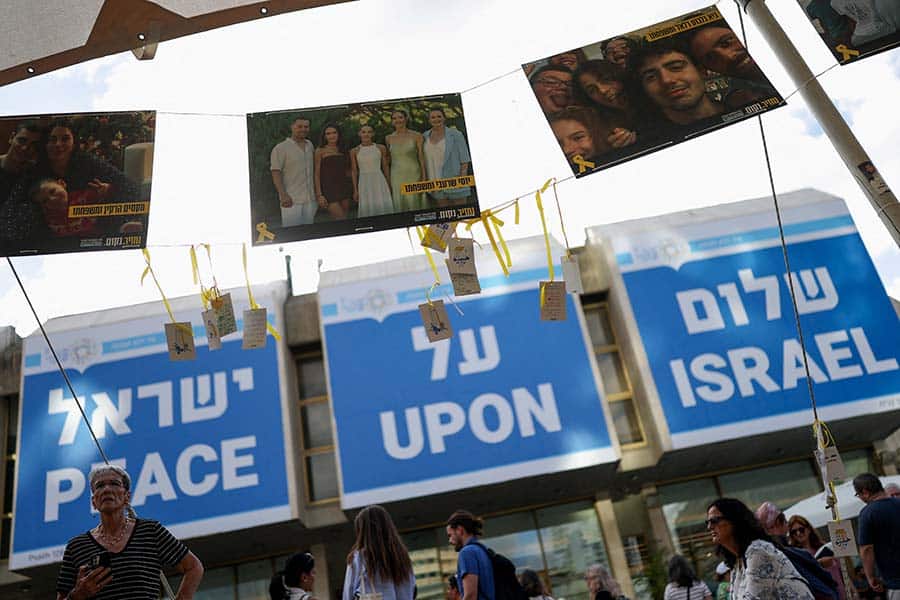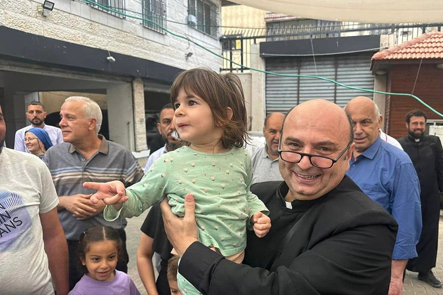 Amid historic deal, Gaza pastor says little is left after ‘tsunami’ of destruction October 13, 2025By Paulina Guzik OSV News Filed Under: Conflict in the Middle East, News, World News Historic momentum is felt across the Middle East as thousands gathered Oct. 11 in Tel Aviv, Israel, for the last mass gathering before the hostage release expected to take place Oct. 13, and tens of thousands of Palestinians started to make their way back to their homes in northern Gaza Strip. But those Palestinians have returned to see only mostly rubble left, with Father Gabriel Romanelli, the pastor of Gaza City’s Catholic parish, saying the entire enclave has experienced a “tsunami” of destruction. Hundreds of aid trucks slowly made their way out of a gigantic Rafah crossing queue into Gaza early morning Oct. 12 — a territory exhausted, starving and flattened after a two-year war that started after Hamas, the Palestinian militant group ruling Gaza, carried out a surprise attack on Israel, killing 1,200 people in massacres perpetrated in southern Israeli communities Oct. 7, 2023. The ensuing war has led to an estimated 67,000 Palestinian dead and 170,000 injured, the vast majority believed to be civilians. Father Gabriel Romanelli, pastor of Gaza City’s Holy Family Parish, is seen with a child from the Catholic parish in Gaza City during the May 16-19, 2024, visit of the Latin patriarch of Jerusalem, Cardinal Pierbattista Pizzaballa, to the Gaza Strip. (OSV News photo/courtesy Latin Patriarchate of Jerusalem) At the same time in the Vatican, Pope Leo XIV called for the warring to lay down their weapons in the presence of the original statue of Our Lady of Fatima. “Disarm your hands and, even more importantly, your hearts. As I have said before, peace is unarmed and disarming,” Pope Leo said. “It is not deterrence, but fraternity; it is not an ultimatum, but dialogue. Peace will not come as the result of victories over the enemy, but as the fruit of sowing justice and courageous forgiveness.” In an Oct. 11 video recorded as the pope was placing a gold rose in a small vase at the foot of the Our Lady of Fatima statue and prayed silently before beginning the prayer vigil, Father Romanelli, said, “Today we pray united to the Patriarch of Jerusalem and to the Holy Father and to all Christians of the world; and we offer penance, sacrifice and fasting for peace, especially by praying the rosary and Mass.” President Donald Trump will visit Israel Oct. 13 to address Israel’s parliament, the Knesset, and meet hostage families. He will later fly to the Red Sea resort city of Sharm el-Sheikh, Egypt, to witness signing a peace deal between Israel and Hamas, along with the other guarantors of the Gaza peace deal. Leaders and foreign ministers from Germany, Spain, France, the United Kingdom, Italy, Qatar, the United Arab Emirates, Jordan, Turkey, Saudi Arabia, Pakistan, and Indonesia are expected to participate at the summit hosted by Egypt’s President Abdel-Fattah el-Sissi. The peace deal comes at a point where people on both sides have expressed exhaustion with the war: Israelis waiting to see their loved ones, among them the 20 remaining hostages said to still be alive, and Palestinians overwhelmed by the scale of death and destruction in Gaza. Ofir Braslavski, father of 21-year-old hostage Rom Braslavski, set to be released Oct. 13, told CNN, “Every second feels like it’s lasting forever; we’re just waiting for the moment they call us — to Re’im (the meeting point) and then to the hospital.” People walk near pictures and messages displayed at “Hostages Square” in Tel Aviv, Israel, Oct. 12, 2025, amid a ceasefire between Israel and Hamas in Gaza. (OSV News photo/Hannah McKay, Reuters) Meanwhile, one Palestinian woman making her way to her home told the news outlet Oct. 12, “The scale of destruction is indescribable.” Father Romanelli, lightly injured in the leg during the Israeli military strike on the Holy Family Parish compound July 17, attempted to put into words the scale of Gaza’s tragedy. “What’s happened here is something analogous (to) a tsunami,” he said in a video posted on his YouTube and X social media feeds. “Do you remember when we saw the photos, the live images of the tsunami many times? How everything was utterly crushed, right? It’s literally like that” in Gaza, he said Oct. 11. “There are entire neighborhoods like that; and in every neighborhood there are many houses like that,” he said. The Catholic priest added that just as with a natural disaster there are fears of subsequent waves, the same feeling is palpable among Palestinians. “There’s fear that there will be, that there will be other waves, and that fear is there. I mean, there’s the fear that war will return, there’s the fear that the parties won’t respect them, even those who have made commitments,” Father Romanelli said. He said the peace deal is a clear sign that “something has changed” and “everyone is fed up with the war.” “For the first time in at least many years, many countries that … disagree on politics, foreign policy, domestic policy … have agreed to say that, in addition to freedom, they must release the hostages and prisoners, that Gaza must be rebuilt, that people must live on their land, that Palestinians can live here in the strip … it’s absolutely essential,” he said. Father Romanelli said the big question now for the diminished Palestinian Catholic community in Gaza — of whom around 500 sheltered in the Holy Family Parish — is “OK, now what do we do? How do we do it?” now that initial peace deal is agreed upon. Palestinians collect aid supplies from trucks that entered the Gaza Strip, amid a ceasefire between Israel and Hamas in Gaza City, Oct. 12, 2025. (OSV News photo/Ramadan Abed, Reuters) “From a spiritual point of view, we have always tried to help them and continue to help, to pray, to encourage them,” F