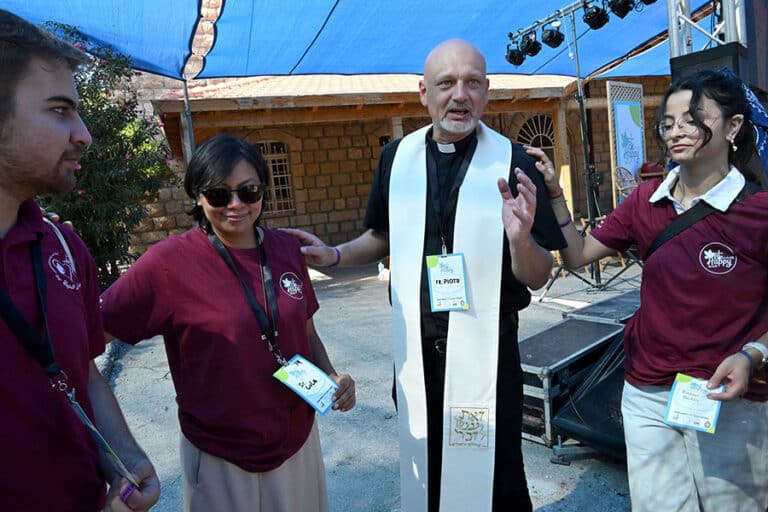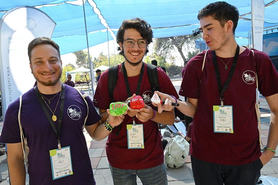 Amid post-war healing, Catholic youth in Israel find unity through faith October 20, 2025By Judith Sudilovsky OSV News Filed Under: Conflict in the Middle East, News, World News DEIR RAFAT, Israel (OSV News) — At first, Grace Rofa, 20, a Catholic Palestinian from Jerusalem, and Reign Arpon, 19, a Filipino member of the Hebrew-speaking Catholic community in Tel Aviv, were unsure what the Oct. 18 “Be Happy Youth Festival” would be like. After two years of the Israel-Hamas war in the Gaza Strip, emotions were still raw despite the ceasefire, with each having lived a very different experience. But as the morning progressed at Deir Rafat monastery, which hosted the retreat outside of Jerusalem, their initial reservations quickly faded. They realized that, as Christians, they had more in common than not. The retreat, organized by the St. James vicariate for Hebrew-speaking Catholics and the Latin patriarchate’s general secretariat for the youth in Galilee in collaboration with the Youth Pastoral Office of the Latin Patriarchate, brought together about 200 young people from the Arabic and Hebrew-speaking Catholic communities. Indian Sister Elizabeth Sofi, a sister of St. Joseph, joins an activity at the “Be Happy Youth Festival” in Deir Rafat, Oct. 18, 2025. Nearly 200 young Catholics from both Hebrew- and Arabic-speaking communities in Israel came together for the festival. (OSV News photo/Debbie Hill) It was meant to help the youth “stand together in hope” despite their cultural differences, especially after the war that followed the Oct. 7, 2023 Hamas attack on southern Israeli communities, said Father Piotr Zelazko, patriarchal vicar for the St. James vicariate. The gathering included young adults and leaders from nine different parishes in Israel. “It’s not as hard as I thought because we’re human,” Rofa said. “We can have different ideologies but we’re united by the church and by Christ. We’re Christian. That’s how we’re united. That’s why we’re here.” Arpon, too, found the atmosphere unexpectedly welcoming. “I thought it would be awkward … since the war, maybe people would not see each other as friends, as sisters and brothers, but they are very friendly and I’m so happy that it’s this way,” she said. Ram Perez, 18, a convert to Catholicism and member of the Hebrew-speaking Catholic community, said he usually does not have the opportunity to meet Christian Arabs. He noted that St. Paul in his letters emphasizes the importance of community. “We are all one body, the body of Christ. To not know the other members of your body is like for the eye to not know the ear. So we have to communicate, we have to talk, we have to meet, we have to pray together, to love each other,” he said. Father Zelazko said that, despite their cultural differences, the event was vital for both Arabic and Hebrew-speaking Catholic youth to unite in hope. “The goal is to see all who are here as persons in the spirit of God,” Father Zelazko said. “Their worlds are so separated that the fact that we are all Catholics sends a message, not so much for the world, but for us in this difficult time that (we have more in common). We have the same fears and problems and like the same music. This is a moment of hope.” The retreat began with priestly blessings before participants broke into smaller groups. They moved through different stations — friendship bracelet making, creating symbols of hope on stones, and reflecting on a letter from a fictional pilgrim embarking on a journey in the midst of war. Conversations flowed in Hebrew, Arabic and English, creating a sense of unity. Abi Laby, Israeli, Ram Peres, from Jaffa, and Matan Yeger, from Abu Ghosh, show rocks that they painted with a message of hope during an activity at the “Be Happy Youth Festival” in Deir Rafat, Israel, Oct. 18, 2025. (OSV News photo/Debbie Hill) Father Benedetto di Bitonto, parish priest of the Jerusalem Hebrew-speaking Catholic community, explained that the conflict in the region affects Catholics on both sides. While they share faith and a bishop, cultural and societal differences create emotional “walls.” Hebrew-speaking Catholic youth, who live within the Israeli reality and serve in the Israeli army, may not naturally connect with Christian Arabs, whose experiences differ greatly. “We have to … let fall many walls that we have in our minds and in our hearts,” he said. “The Gospel challenges us not to put anybody in boxes and just to see human beings as our brothers.” The goal, he said, is for such gatherings to become routine. Despite the challenges of the past two years, he saw the willingness to come together as a “miracle.” After all, the instinct after such traumatic events is often to retreat into one’s own community for healing. “Probably one of the most difficult things that this war has provoked in our hearts is the fact that we are in so much pain that we are not able to see the pain in the other,” he said. Sister Muna Totah, a teacher and member of the Sisters of St. Joseph of the Apparition, also saw the gathering as a hopeful sign. As a native of Ramallah working in Israel, she had made the conscious decision to connect with Hebrew-speaking Catholics, understanding that everyone, regardless of background, shared similar fears and emotions. “We’re all in the same boat,” she said. “We can confront our emotions openly, letting Jesus heal us by approaching the other, not by pushing them away.” In the afternoon, Latin Patriarch Cardinal Pierbattista Pizzaballa presided over Mass, highlighting in his homily that the gathering was a reflection of unity as the central vocation of the church in the Holy Land, especially in difficult times marked by division and suffering. “Maybe we have many differences among us,” he said, “but I don’t know what unites us other than Jesus Christ. Because of Him, we can overcome our differences and diver