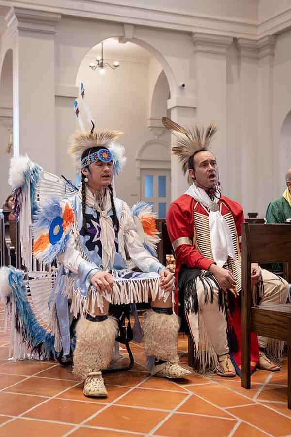 Archbishop Coakley celebrates annual Native American Mass at Blessed Stanley Rother Shrine November 25, 2025By Sally Linhart Sooner Catholic Filed Under: News, World News OKLAHOMA CITY (OSV News) — Facing east toward the altar of the Blessed Stanley Rother Shrine, Deacon Roy Callison burned cedar as his wife, Susan, recited the first of the four invocations in the Prayer in the Four Directions, a traditional spiritual practice rooted in Indigenous culture. Using a shell and an eagle fan, Deacon Callison continued the Native American ritual of cedaring. As he turned to face south, the congregation mirrored his moves and Susan recited the second prayer. He continued the symbolic act of purification, using items found in nature, and recited the two remaining prayers facing west and then north. Michael Dalby and his son Wyatt joined in singing a Kiowa song with the Riverside Indian School Choir during the third annual Native American Mass Nov. 23, 2025, at the Blessed Stanley Rother Shrine in Oklahoma City. (OSV News photo/Chris Porter, Sooner Catholic) Following the recitation of the Prayer in the Four Directions, and in his first major Mass since being elected president of the U.S. Conference of Catholic Bishops, Archbishop Paul S. Coakley of Oklahoma City processed down the aisle of the shrine as students from Riverside Indian School, and some adults, sang the processional hymn in Kiowa. This was the third annual Native American Mass. It was celebrated on Nov. 23, the Solemnity of our Lord Jesus Christ, King of the Universe, at the shrine in Oklahoma City. Michael Dalby, along with his son Wyatt, participated in the procession in full Native American regalia. “We are still here,” Dalby said. “We are participating, we are Catholic.” Dalby recited the first reading in both Kiowa, his native language, and then in English. The second reading was recited in Cherokee and English by Harry Oosahwee. Coakley was joined by concelebrants Benedictine Abbot Lawrence Stasyszen of St. Gregory’s Abbey in Shawnee and Benedictine Abbot Philip Anderson of Our Lady of Clear Creek Abbey in Hulbert in the Diocese of Tulsa. Assisting were Deacons Roy Callison and Craig Victor. Both Michael and Wyatt, a day student at Riverside Indian School, recited prayers in Kiowa. Prayers were recited in Comanche by Dana Attocknie and Cathy Lonewolf, as well as in Potawatomi by Robert Collins. In his homily, Archbishop Coakley acknowledged Oklahoma’s 39 federally recognized Native American tribes, saying, “All the tribes of the Earth will be blessed in him.” The event, sponsored by the American Indian Catholic Outreach for the Archdiocese of Oklahoma City, incorporated facets of Native American culture while honoring the traditional manner of celebrating Mass according to the liturgical calendar. In an interview with the Sooner Catholic, Oklahoma City’s archdiocesan news outlet, Dalby explained: “We’re just doing what we always do. It’s regular Mass, just in our native language. This just gives us a chance to get out there and show that we do walk in two worlds.” Prayer in the Four Directions Great Spirit, Come to us with the power of the North. Make us courageous to walk the sacred path with Saint Kateri Tekakwitha. Give us strength and endurance to do all that we are called to do during our life, especially in times of trials and adversity. Spirit of Light, Come to us out of the East, the place of new beginnings and promise. With the power of the Rising Sun announcing a new day, you give us hope. Let there be joy in our words just as you gave the spiritual gift of new life to Saint Kateri through the waters of baptism. Great Spirit, Send us the warmth and soothing winds of your healing medicines from the South. You are the gentle rain that brings forth the seed of life. Enable us to hear prophetic voices around us as Saint Kateri Tekakwitha shared God’s love, compassion and healing power among her people. Spirit of Life, We face you in the direction of the West. Help us to be bearers of your Word. May we be voices of life and hope to all peoples, nations, races and beliefs, as exemplified in the life of Saint Kateri Tekakwitha. Amen. Read More World News Pope tells reporters dialogue is always the answer to tense situations Catholic advocates raise alarm at Trump’s call to ‘pause’ migration from ‘Third World Countries’ U.S. bishops award over $7 million in grants to home missions, thanks to nation’s Catholics Choose the way of peace, pope says as he leaves Lebanon Baltimore native Weigel honored for defense of human dignity in the face of aggression Lebanese have what is needed to build a future of peace, pope says Copyright © 2025 OSV News Print