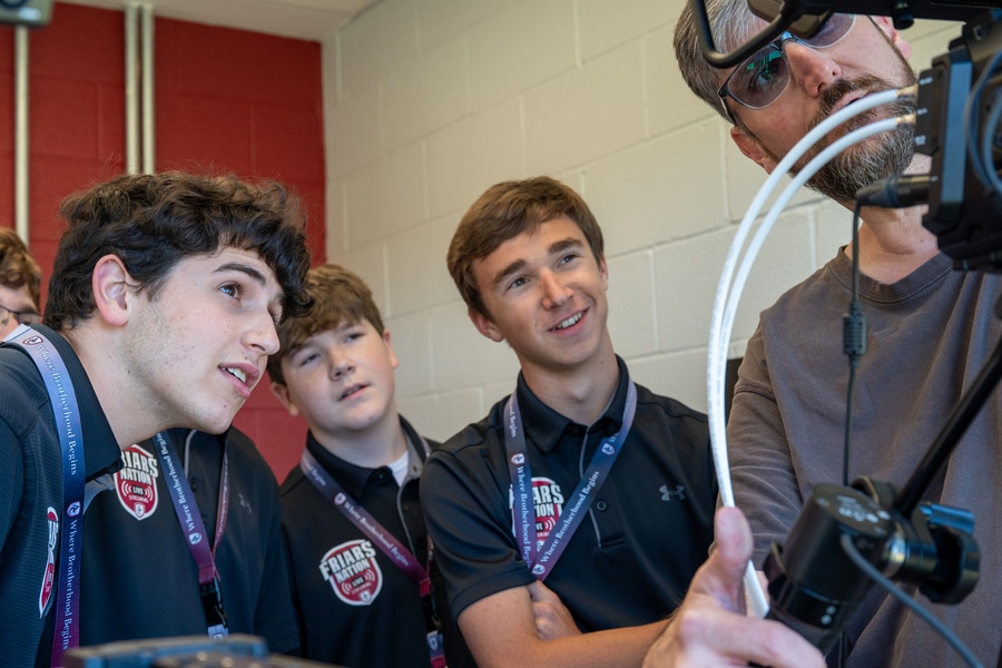 Archbishop Curley High School to open new Citro Pavilion October 10, 2025By Richard A. Zmuda Catholic Review Filed Under: Feature, Local News, News, Schools More than 50 years after graduating from Archbishop Curley High School, Joe Citro is still finding new ways to cheer from the sidelines. He and his wife, Arleen, will cut the ribbon Oct. 18 on The Citro Pavilion – a $500,000 gift that blends Curley’s proud past with its digital future. John Giordano, second from left, Kaeden Peck, Grant Husky and fellow members of the Friar Nation Livestream Team at Archbishop Curley High School in Baltimore, are introduced to new cameras in the Sainz & Joseph Broadcast Center Oct. 9 by Pablo Sainz, ’94, production director for Church of the Nativity in Timonium. The team will debut their new facility inside the new Citro Pavilion Oct. 11 during homecoming. (Kevin J. Parks/CR Staff) The ceremony will be preceded by a blessing by Bishop Adam J. Parker, auxiliary of the Archdiocese of Baltimore, and followed by soccer and football homecoming contests on the campus of the East Baltimore school. The architectural design of the 750-square foot pavilion was led by another Curley graduate, Eric Jenkins, ’82. It includes a broadcasting/livestreaming room, a hospitality room and adjoining portico. It is centered on the 50-yard line of the field at the top of the terraced seating area. “It blends in with the mid-century modern design of the main school building,” said Conventual Franciscan Father Donald Grzymski, Curley’s president and a 1970 graduate. He noted that a major goal of The Citro Pavilion will be to get students involved in all aspects of livestreaming – technical, voice-over and broadcasting. In that regard, The Citro Pavilion mirrors a nationwide trend supporting direct student involvement in the outreach and social messaging of their schools. School ground crew work on finishing touches outside at The Citro Pavilion at Archbishop Curley High School in Baltimore Oct. 9. (Kevin J. Parks/CR Staff) Students involved in Friars Nation, Curley’s Livestreaming Club, will be among the first to take advantage of the new facility. The stated objective of the club is to engage students in all aspects of broadcasting. They develop their skills working as cameramen, play-by-play announcers or color commentators for athletic events as well as by broadcasting other school functions. “This facility gives the students the opportunity to work in a professional setting and be able to experience a studio atmosphere,” said Deacon Tim Maloney, a moderator of the club. “They are eager to move in.” Grant Huskey, a junior at Curley, has been involved with livestreaming since his freshman year. He believes the new broadcast center will allow for the quality of broadcasts to increase. “This space is a dramatic improvement, from working off a table under a tent, to a dedicated space,” he said. “It feels great knowing that we now have the ability to connect the families, fans and alumni to the game by giving them their own unique game-day experience.” Members of the Friar Nation Livestream Team — Andrew Prazak, left, John Giordano, Joseph Polcari, Grant Husky, Kaeden Peck, and Colin Prazak — stand with cameras in the new Sainz & Joseph Broadcast Center located in the new Citro Pavilion at Archbishop Curley High School in Baltimore Oct. 9. The team will broadcast debut their new facility Oct. 11 during homecoming. (Kevin J. Parks/CR Staff) Joseph Polcari, a senior who has been involved for four years, added, “I’ve learned how to speak for an audience. Friars Nation has hundreds of viewers every game, and to be able to transfer information about the game is a crucial skill to learn. Another skill is problem solving. We have had minor issues and fixing them in an appropriate amount of time to put on a consistent production is very important when broadcasting.” Construction of The Citro Pavilion fulfills one aspect of the school’s 2022-25 Strategic Plan regarding facilities, namely to construct a stadium press box. More importantly, it also reflects one of Archbishop Curley’s core belief statements: “A Curley Man is supported by the Curley Family: alumni, students, faculty, staff, parents, alumni parents and friends of Curley.” “We are so grateful to Mr. and Mrs. Citro for this enhancement of the Curley facilities,” Father Grzymski said. “This generosity reflects the support of the ‘brotherhood’ and the spirit of the whole Curley family.” Also see Calvert Hall holds off Loyola Blakefield to claim a 28-24 victory in the 105th Turkey Bowl Maryland pilgrims bring energy and joy to NCYC 2025 5 Things to Know about the 2025 Turkey Bowl Mercy High School freshman set to ask question of Pope Leo XIV Baltimore-area Catholic school students take active role in Ignatian Teach-In Faith, fortitude inspire St. Mary’s freshman through journey with kidney disease Copyright © 2025 Catholic Review Media Print