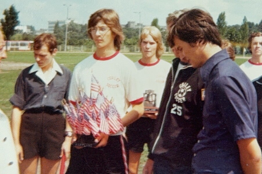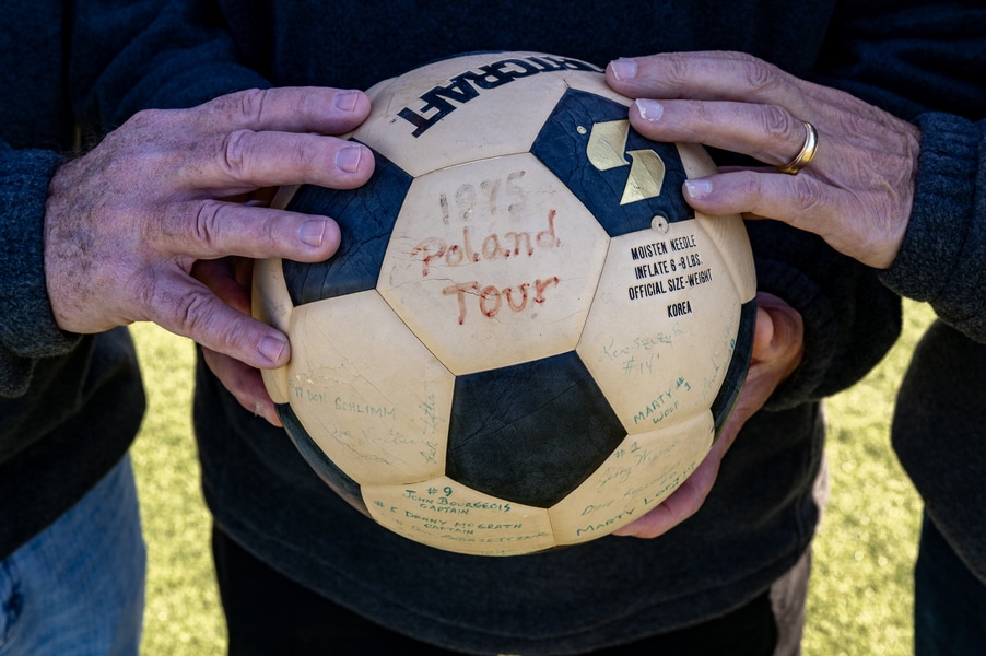Archbishop Curley’s 1975 soccer squad defied the odds – and Cold War barriers December 8, 2025By Gary Lambrecht Special to the Catholic Review Filed Under: Feature, Local News, News, Schools, Sports During Archbishop Curley High School’s Oct. 11 Homecoming Day, a group of 60-something ex-soccer teammates made Curley history – five decades after they had achieved distinction while playing on soccer pitches a long way from home. Teammates forever, the hands of Dennis McGrath, left, John Bourgeois and Frank Savarese, who were players on the 1975 Archbishop Curley High School soccer team, hold the ball that traveled with them on a goodwill tour to Poland. (Kevin J. Parks/CR Staff) On a day when they officially became the first team ever inducted into the all-boys school’s Athletic Hall of Fame, those aging Friars once again relived their stunning soccer achievement in the summer of 1975. It happened during Curley’s successful three-week trip to then-communist Poland. It was an eye-opening visit, defined in part by the Cold War divide between Western Europe, bolstered by United States support, and the former Soviet Union (USSR), which had established Russian communist dominance over Eastern European nations as a buffer against the West. The Soviet Union collapsed in 1991. “It was a thrill for me to go (to Poland) and walk around places my ancestors did. There were lots of other foreign students staying there. It wasn’t just us,” said Jerry Wysocki, who was the goalkeeper leading the Friars’ excellent defense, and one of numerous Curley players of Polish heritage. “It was weird getting off the plane and seeing guards with machine guns. There were always guys in trench coats who were watching us,” he added. “Maybe it was because we were wearing Curley warm-ups with American flags on them.” The 1975 Archbishop Curley soccer team was the school’s first to be named a “team of distinction” by its hall of fame committee. (Courtesy photo) The Curley players, who were just learning about geopolitics back then, had missed a chance to win a coveted MSA “A” Conference title in the fall of 1974 by losing, 2-1, to Patterson High School in the championship game. Their outstanding 11-2-3 season ended on a sour note. But the Friars, who were chosen to make the Poland trip based on their consistently good performance and sportsmanship, made up for that stumble by defeating far more experienced Polish club teams that had been playing together for many years. Curley played seven full-squad games and ended the historic trip with a 4-2-1 record. In those four wins, the Friars outscored their Polish opponents by a combined 13-4 count. Until then, American teams had been dominated by Europe’s veteran club players in the 15-19 age group, on a continent that celebrates soccer as its flagship sport. Fifty years later – and after 10 heavily attended team reunions every five years starting in 1980 – the honored Curley men again celebrated the enduring friendships that had taken root during their victorious and transformative trip, more than 4,000 miles from Baltimore. “To a man, I think it was the first time any of us had ever flown. And to have that be a transatlantic flight to a communist nation behind the Iron Curtain. … Did we really do that?” said Dennis McGrath, a parishioner of St. Joseph in Fullerton who was a junior midfielder/fullback for the Friars in 1975. Curley’s soccer team compiled a 4-2-1 record during its tour of Poland in 1975 against some highly regarded competition. (Courtesy photo) “A lot of us didn’t know each other going into the trip,” added McGrath, noting the mix of sophomores, juniors and seniors who had recently graduated from Curley that comprised the team. “But we were good teammates who pulled for and looked out for each other. Because of the language issue, we really got tighter as a group. I think that experience carried over to those reunions.” It was a formative experience for Curley’s 23 players, led by Joe Loftus, their late head coach. The Friars were the first team in the Baltimore area to be selected by the National Soccer Coaches Association to play international games overseas. After starting the trip in New York City, with an overnight stay at the luxurious Waldorf Astoria hotel, the Curley crew got to see and taste what Central European life was like after flying through the night across the Atlantic Ocean to reach their destination. The best part about the trip was that “American spoiled brats” were able to see what a country under communist rule was really like, said Frank Savarese, who later would host the first reunion party – over steamed crabs, grilled meats and cold beer – at his Lutherville home. That tradition continues every five years. “It was important for us to celebrate that trip. It’s something you don’t expect to happen – spending 24 days with a group of guys all experiencing the same issues abroad. Quite a union was formed with this group,” he added. While it fell short of capturing a title at home, the Curley soccer team excelled in Poland. (Courtesy photo) To this day, the five-year reunions draw 90 percent of the team’s 21 surviving players. Two players, Paul Andrzejczuk and Ray Ford, who led the Friars with 11 goals in Poland, are deceased. Unlike the previous travelling American high school teams, Archbishop Curley was poised to flip the script in Poland. Curley set the tone in its first game, a 4-2 victory over Wroclaw. They later beat Poznan, 2-0; Kocian, 3-0 and Masur, 4-2. The Friars toured numerous museums and churches. They participated in soccer clinics. They signed plenty of autographs for curious Poles. They enjoyed American music blasted in discotheques, where enthusiastic natives welcomed them. And they experienced things that made them pine for America. In Poland, the Curley team washed its own clothes by hand. There were no washing machines available. They con