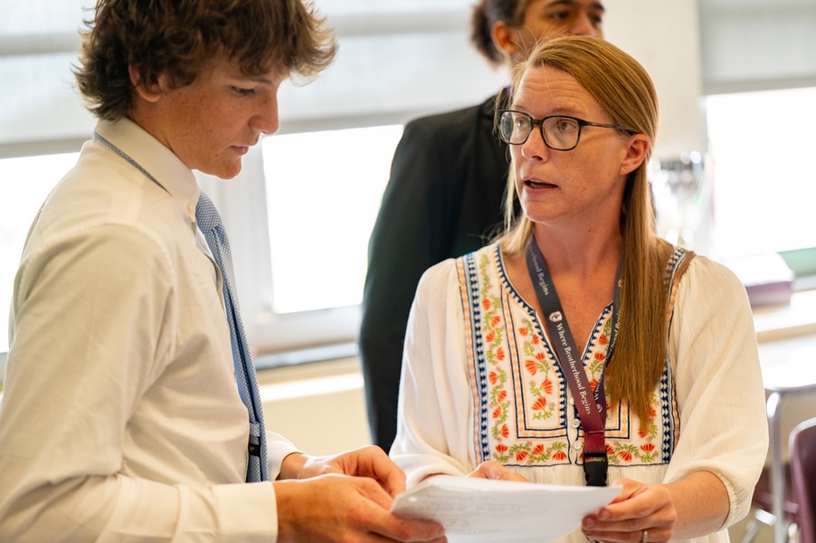 Archbishop Curley’s Natalie Hax named the archdiocese’s high school teacher of the year September 3, 2025By Katie V. Jones Catholic Review Filed Under: Feature, Local News, News, Schools Natalie Hax is a math teacher at Archbishop Curley High School in Baltimore. She was named the Archdiocesan High School Teacher of the Year and works with one of her students during a class May 7. (Kevin J. Parks/CR Staff) As a teacher at Archbishop Curley High School for the last four years, Natalie Hax wants to make sure each student feels “valuable and supported.” “The most important thing for me is making connections with students,” Hax said. “Teaching goes further than the content and curriculum.” Building trust is key to making connections, Hax said. She does that by attending her students’ activities, including numerous sporting events, theater productions and concerts. “We have expectations at Curley,” Hax said. “The challenge and motivation for me is to help them meet the goals we have for them.” Natalie Hax, third from left, is presented with her award at the Archdiocese of Baltimore’s Catholic Education Convocation Mass and awards ceremony Aug. 21, at the Church of the Nativity in Timonium. (Kevin J. Parks/CR Staff) Hax was named the Archdiocese of Baltimore’s high school teacher of the year in April. A teacher in the archdiocese for 11 years, Hax previously taught at St. Ursula School in Parkville, an elementary school, where she is a parishioner. She was also a math resource teacher and worked with middle school students during the COVID-19 pandemic. She decided to “take a leap of faith” and teach high school by accepting a job at Curley. “I was excited,” Hax said. “My dad went to Curley. My brother, my husband. I have a strong family connection there. It always felt like home to me.” Hax, a Catholic HIgh graduate, earned a Bachelor of Business Administration from the University of Notre Dame and a Master of Arts in Teaching from Towson University. Natalie Hax, a math teacher at Archbishop Curley High School in Baltimore, was named Archdiocesan High School Teacher of the Year. (Kevin J. Parks/CR Staff) As Curley’s Algebra 1 teacher, Hax teaches freshmen. “I really do enjoy it,” Hax said. “There is an eagerness and motivation from them. It really is inspiring for me.” She also is a teacher for the school’s St. Anthony program, a three-week summer program for students with different learning needs. “I really get to know these kids,” Hax said. “I learn their strengths and weaknesses. I know their needs.” Principal Jeremy Joseph noted that Hax was his first hire after he became Curley’s principal. “She’s the real deal,” Joseph said. “I appreciate her approach to education. She is able to build relationships to motivate students and access where they are.” Curley, Hax said, “is a great place to work.” “Everybody there is on the same team,” Hax said. “We set our students up for success and to grow throughout their four years there.” Read More Schools Calvert Hall holds off Loyola Blakefield to claim a 28-24 victory in the 105th Turkey Bowl Maryland pilgrims bring energy and joy to NCYC 2025 5 Things to Know about the 2025 Turkey Bowl Mercy High School freshman set to ask question of Pope Leo XIV Baltimore-area Catholic school students take active role in Ignatian Teach-In Faith, fortitude inspire St. Mary’s freshman through journey with kidney disease Copyright © 2025 Catholic Review Media Print