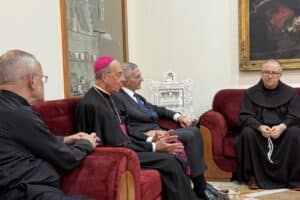 He referred to Cardinal Pierbattista Pizzaballa, the Latin patriarch, and Franciscan Brother Francesco Ielpo, custos of the Holy Land for the Order of Friars Minor. On the visiting group’s first day in Jerusalem, they met with Brother Francesco to discuss his concerns and later met with Cardinal Pizzaballa.