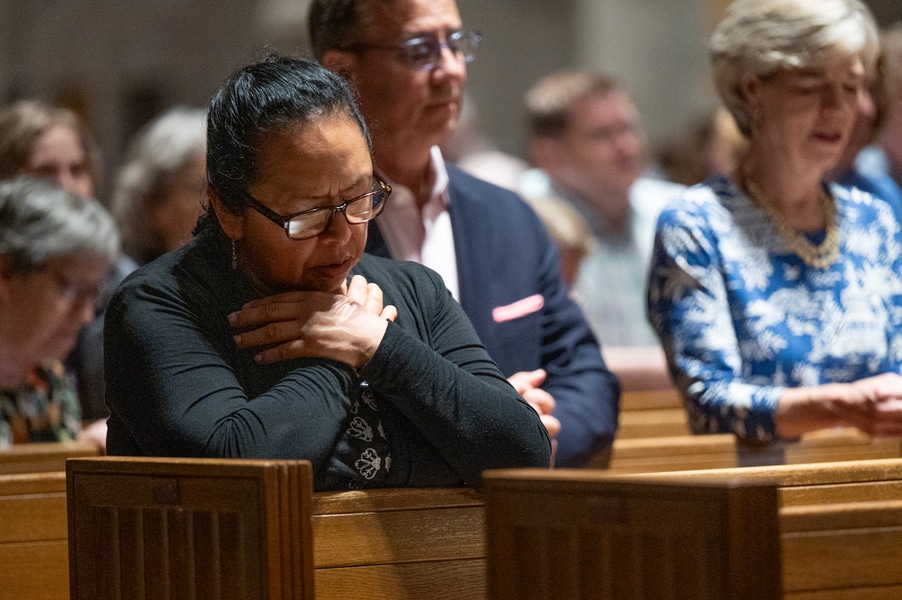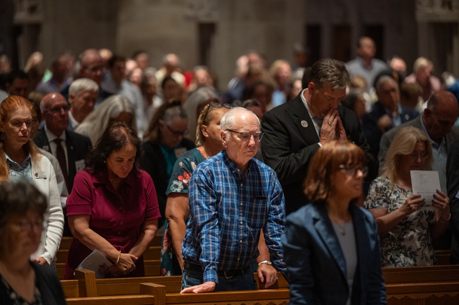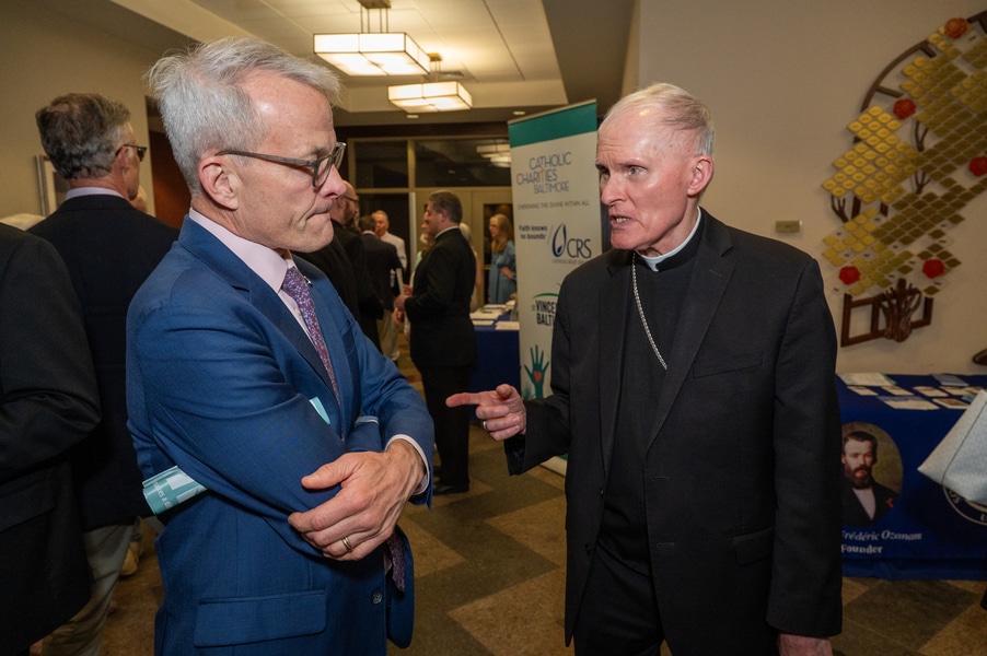 Archbishop Lori offers encouragement to charitable agencies affected by federal cuts June 12, 2025By Katie V. Jones Catholic Review Filed Under: Catholic Charities, Feature, Local News, News, St. Vincent de Paul Baltimore At a time when federal funding cuts are straining the services of charitable organizations across the region, Archbishop William E. Lori offered a message of hope and solidarity during a special “Mass for the Preservation of Peace and Justice” celebrated June 11 at the Cathedral of Mary Our Queen in Homeland. Over 400 supporters gathered at the Cathedral of Mary Our Queen for a Mass themed “Preservation of Peace and Justice.” The celebration, led by Archbishop William E. Lori, was held in gratitude for the essential work of Catholic Relief Services, Catholic Charities of Baltimore, and the Society of St. Vincent de Paul of Baltimore on the evening of June 11 in Homeland. (Kevin J. Parks/CR Staff) The Mass recognized the critical work of Catholic Relief Services, Catholic Charities and the Society of St. Vincent de Paul. Concelebrating with Archbishop Lori were Bishop Mark E. Brennan of the Diocese of Wheeling-Charleston, Auxiliary Bishop Roy Edward Campbell Jr. of the Archdiocese of Washington, and Bishop William E. Koenig of the Diocese of Wilmington. “In recent months, the U.S. government abruptly suspended refugee resettlement funding and halted international humanitarian aid – forcing the church and its agencies to lay off employees, terminate programs, and, most painfully, turn away those most in need,” Archbishop Lori said in his homily. “These decisions have done more than disrupt logistics – they have frayed bonds of trust that are essential to our mission of mercy.” The archbishop said erosion of trust has not only happened in international aid decisions, “but here at home as well.” “Recent immigration raids have left many families shaken, not because they were hiding wrongdoing, but because the enforcement actions were carried out in ways that provoked fear and anxiety among ordinary, hard-working immigrants – our neighbors, our parishioners, our friends,” he said. “While governments have the right to enforce laws, they must do so with humanity and prudence. It is never necessary to instill fear in order to ensure order. The peace we are called to build cannot be reconciled with tactics that sow division and dread in our communities.” A Mass for “Preservation of Peace and Justice” was celebrated June 11 in Homeland. (Kevin J. Parks/CR Staff) Now is the time to remember that “the Gospel does not promise us ease or clarity. But it does promise that the Holy Spirit is with us and that Jesus will breathe peace into our chaos,” he said. It is important “to remain present,” the archbishop said, even if that means providing services in different ways. Most importantly, he said, “advocate without fear” and “still show up for those in need.” “The Risen Jesus does not leave us behind locked doors. He enters, even now, with a word of peace and a command to go out,” Archbishop Lori said. “Go, not in despair, but with the strength of the cross and the peace of Christ.” Applause filled the cathedral after the archbishop’s homily. Changes in federal policies have had a dramatic effect on the work of charitable organizations over the last few months. Catholic Relief Services, the bishops’ Baltimore-based international relief agency, for example, said May 21 that most of its projects under a federal international food aid program were terminated, leaving hundreds of thousands of children more vulnerable to hunger. More than 780,000 children across 11 countries will be left without their school meal, in many cases their only meal of the day, as a result of the termination of 11 out of CRS’ 13 projects under the McGovern-Dole International Food for Education and Child Nutrition Program, according to a report by OSV News. Cuts in foreign aid are also expected to drastically limit CRS’s outreach. Auxiliary Bishop Roy E. Campbell Jr. of the Archdiocese of Washington, from left, Bishop William E. Koenig, D.D., of the Diocese of Wilmington, Baltimore Archbishop William E. Lori and Bishop Mark E. Brennan of the Diocese of Wheeling-Charleston concelebrate a Mass for the Preservation of Peace and Justice June 11 at the Cathedral of Mary Our Queen. (Kevin J. Parks/CR Staff) Prior to the Mass, Mary Helfrich, chief advancement officer for the Society of St. Vincent de Paul, said in an interview that the Mass would help “reinforce to our donors and supporters that we are an integral part of the area.” While the nonprofit is “fairly stable” right now, if it loses funding for programs, it would have a “ripple effect” where “people could lose their homes,” she said. “I think people in the community outside of our donor base may not realize the significance of our programs,” Helfrich said. “We do so much more than just shelter. We’re trying to provide as many resources as we can to help folks get ahead.” Cindy Halloran, local conference president of St. Vincent de Paul Society at St. John the Evangelist in Severna Park, said the archbishop’s homily was “what we all needed.” Bill O’Keefe, executive vice president for mission, mobilization and advocacy for Catholic Relief Services, speaks with Bishop Mark E. Brennan, who leads the Diocese of Wheeling-Charleston in West Virginia, following a Mass for the Preservation of Peace and Justice June 11 at the Cathedral of Mary Our Queen in Homeland. (Photo by Kevin J. Parks/CR Staff) “It lifted me,” she said. “It was beautiful.” Bill O’Keefe, executive vice president for Mission, Mobilization and Advocacy at Catholic Relief Services, also was moved by the homily. “It has been a very long tough year,” O’Keefe said. “That was incredible …to feel solidarity and to be reminded of the mission of service.” During the Mass, which attract