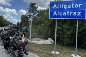 Archbishop Thomas G. Wenski of Miami and some 25 Knights of Columbus saddled up their motorcycles to pray a rosary at the entrance of Alligator Alcatraz, the controversial migrant detention center recently opened in the Florida Everglades.