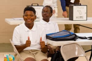 After middle school students entered the school for their first day, elementary students lined up by grades before proudly marching into the school. Gregory A. Farno, chancellor of education for the Archdiocese of Baltimore, greeted them outside with fist bumps as they passed and School Sister of Notre Dame Patricia McCarron, superintendent of the Archdiocese of Baltimore’s Catholic schools, greeted them inside.