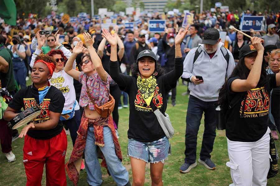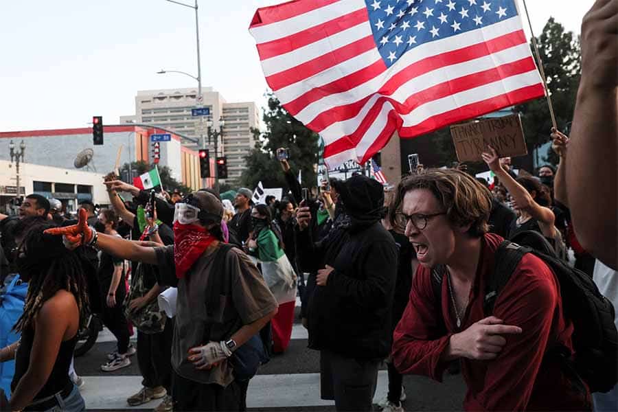 As chaotic demonstrations erupt across U.S., Catholic experts counsel nonviolence June 12, 2025By Kimberly Heatherington OSV News Filed Under: Catholic Social Teaching, Feature, Immigration and Migration, News, World News The crowd of hundreds — including clergy from many denominations, leaders and supporters of faith advocacy groups, and church congregants — were peaceful and respectful when they gathered near the U.S. Capitol June 10 for a “Pentecost Witness for a Moral Budget.” But they were nonetheless stirred — vocally urging Congress to protect Medicaid, SNAP food assistance benefits, and other programs targeted for what they say are crippling cuts in the Trump administration’s One Big Beautiful Bill Act (H.R. 1), now under review in the U.S. Senate. In defending the bill, House Speaker Mike Johnson, R-La., has called the claim it makes drastic cuts in medicaid “misinformation” and that Medicaid coverage for people who need it is not threatened. People hold signs during a demonstration in Washington June 10, 2025, as part of nationwide protests in solidarity with Los Angeles protests against federal immigration sweeps. (OSV News photo/Nathan Howard, Reuters) But organizers of the vigil — including Georgetown University’s Center on Faith and Justice — earlier declared, “Stripping support from the nation’s most vulnerable communities in order to cut taxes for the rich is a moral tradeoff … followers of Jesus must not accept.” So what did they do? They rallied in protest. And being people of faith, they did it nonviolently. It’s an important precept of Catholic citizenship: Ethical disagreement with public policy — and a desire to peacefully change it — is a worthy undertaking. It’s also in contrast to aggressive encounters recently breaking out across America — in Los Angeles, where 4,000 U.S. National Guard troops and 700 Marines are deployed, in Minneapolis and in New York — as communities physically react to Immigration and Customs Enforcement raids detaining their neighbors who are in the country without legal documents. Los Angeles Archbishop José H. Gomez urged restraint. “We all agree that we don’t want undocumented immigrants who are known terrorists or violent criminals in our communities,” Archbishop Gomez said June 9. “But there is no need for the government to carry out enforcement actions in a way that provokes fear and anxiety among ordinary, hardworking immigrants and their families.” Protests that began June 6 with relative calm have since escalated to scenes of burning cars, violent clashes with police and hundreds of arrests. Meanwhile, officials — including California Gov. Gavin Newsom and LA Mayor Karen Bass — maintain the chaos is limited to a small downtown section of the city. Demonstrators react to crowd control munitions being shot at them by law enforcement in downtown Los Angeles June 10, 2025, as protests against federal immigration sweeps continue. OSV News photo/Leah Millis, Reuters) “Living, speaking, and acting without violence is not giving up, it is not losing or giving up anything,” Pope Francis said in April 2023, “but aspiring to everything.” How then, to effectively encourage change in a culture that too often resorts to force — or ignores those who don’t? OSV News spoke with experts in peacebuilding to explore Catholic principles of nonviolent protest. “If you are interested in joining a protest or demonstration,” said Meghan J. Clark, professor of moral theology at St. John’s University in Queens, New York. “I would urge Catholics to prepare.” Clark — who previously wrote, “Protest is not merely about justice; it is an act of faith” — suggests preparation in three key areas, particularly for action concerning immigration issues. “First, information: Make sure you learn about what is going on. It is also important to know what to bring and what to leave at home,” she advised. “Ignatian Solidarity Network and CLINIC (Catholic Legal Immigration Network Inc.) are perfect places to start. They offer a wealth of information, practical guides and narrative stories.” Next, Clark counseled prayer. “Prayer, discernment, and reflection are crucial to prepare oneself to engage in active nonviolent protest. Dr. Martin Luther King, Jr., developed principles of active nonviolence that I would urge Catholics to utilize in spiritually preparing themselves,” she said. “When we prepare ourselves spiritually, then it is easier to resist fear, intimidation, and escalation in a tense situation.” A woman holding a Mexican flag stands on Sixth Street Bridge after a curfew for downtown Los Angeles was issued, following protests against federal immigration sweeps, June 10, 2025. (OSV News photo/David Swanson, Reuters) And lastly, community. “Participation in demonstrations is best done with others. Even if you do not know anyone else interested in going, when you join the demonstration, get to know your neighbors,” Clark recommended. “In joining together to protest injustice, we create new moments of encounter and solidarity among each other.” Gerard Powers — director of Catholic peacebuilding studies and coordinator of the Catholic Peacebuilding Network at Notre Dame University’s Kroc Institute for International Peace Studies — agreed. Powers cited the crucial role Catholics have had in nonviolent protests — from People Power in the Philippines and Solidarity in Poland, to the anti-Iraq War protests in 2003 and the annual March for Life in Washington. “To maintain the moral high ground and be effective, protests must remain nonviolent, organized and disciplined, and strategically focused on the injustice at issue,” Powers explained. “If protests become random and associated — even if unintentionally — with violence, they should cease, and alternative means of opposing the injustice should be pursued.” Nor can protests be the only tool of op