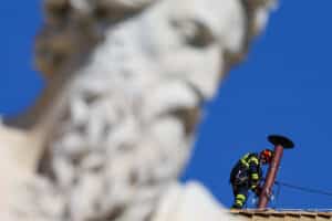 As the cardinals were meeting May 2, Vatican firefighters were installing the chimney on the roof of the Sistine Chapel. The chimney connects to the stove, installed in a corner of the chapel, where the cardinals’ ballots will be burned. With a chemical additive, black smoke out of the chimney signals that no one was elected while white smoke means the church has a new pope.