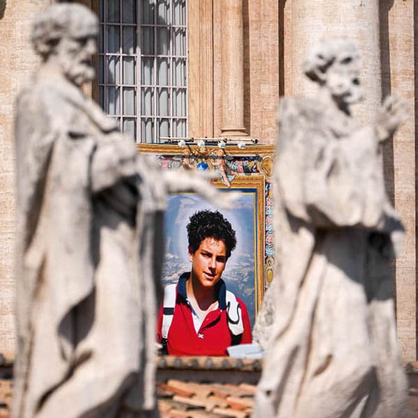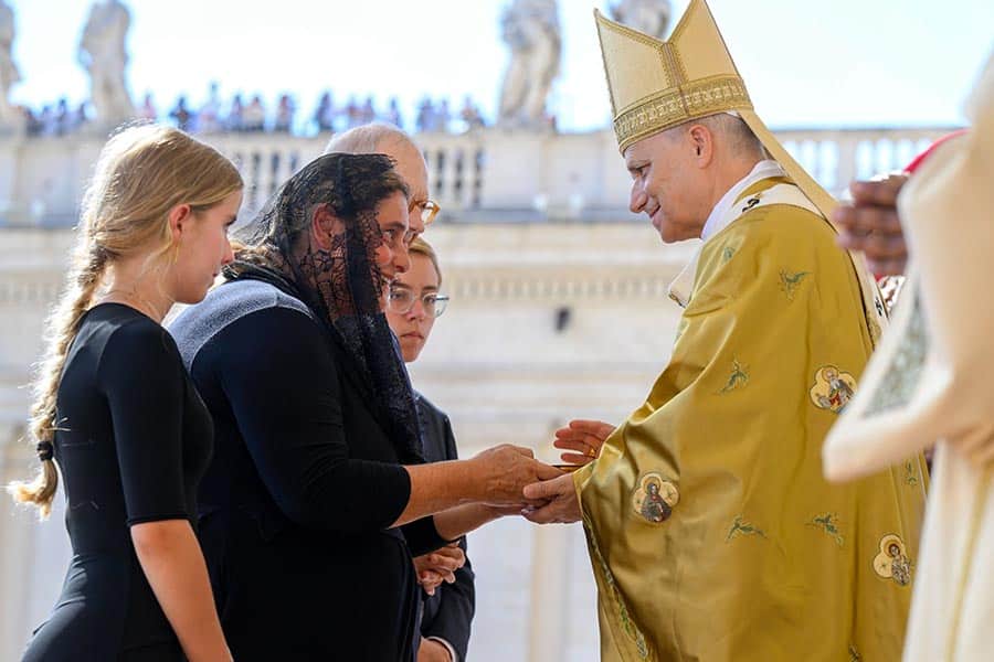 At canonization Mass, two mothers stand out as giants of confidence in God September 8, 2025By Paulina Guzik OSV News Filed Under: Feature, News, Saints, Vatican, World News The Catholic Church has its first millennial saint. At a packed canonization Mass in Rome, with 80,000 attending, it was the face of the mother that said it all during the canonization Mass — Antonia Salzano was moved beyond words when her son, Carlo Acutis, was officially declared saint of the Catholic Church. The miracle that sealed his path to sainthood was front and center at the Sept. 7 canonization Mass. Twenty-four-year-old Valeria Vargas Valverde of Costa Rica, who nearly died from a traumatic bike accident in 2022, prayed at the Mass. Her recovery, which doctors called medically inexplicable, followed her mother’s desperate prayers at then-Blessed Carlo’s tomb in Assisi, Italy. Pope Leo XIV receives the offertory gifts from Antonia Salzano, mother of St. Carlo Acutis, and her family during the canonization Mass in St. Peter’s Square at the Vatican Sept. 7, 2025. From left to right are Francesca Acutis, Salzano, Andrea Acutis and Michele Acutis. (CNS photo/Vatican Media) At the canonization Mass, confidence in God of those two mothers was clearly in the air. “Carlo’s death was an extraordinary loss for Antonia. Like any mother she deeply grieved his passing,” said Father Patrick Briscoe, newly appointed head of communications of the Dominican order. It was Carlo, however, who gave her a new source of confidence, Father Briscoe underlined. Attending the canonization Mass with her husband, Andrea, and Carlo’s twin siblings, born four years after he died — Francesa and Michele — Salzano emotionally shook her head when Pope Leo XIV said that Carlo, now a saint, “encountered Jesus in his family, thanks to his parents … and then at school, and above all in the sacraments celebrated in the parish community.” “He grew up naturally integrating prayer, sport, study and charity into his days as a child and young man,” the pope said. Salzano recalled many times in her interviews that when Carlo was little, she wasn’t practicing her faith a lot. It was Carlo who wanted to be in the church every day, and she facilitated that for him. “‘He saved me,’ Antonia has said on many occasions. It was Carlo who brought Antonia back into the practice of her Catholic faith,” said Father Briscoe, who was among hundreds of priests concelebrating Mass at St. Peter’s Square, presided by Pope Leo on Sept. 7. During a Sept. 5 screening of the documentary “Roadmap to Reality,” directed by Tim Moriarty and produced by Jim Wahlberg at the North American College in Rome, Salzano said that “without Jesus we cannot do anything — and Carlo understood this.” “He always said, ‘I want to please God,'” Salzano told OSV News in 2024. “When he did his first holy Communion — when he was 7 years old — he wrote, ‘To be united with God: this is my life program.’ And he maintained this promise all his life until the end, until his death.” A tapestry depicting St. Carlo Acutis hangs from the facade of St. Peter’s Basilica during a canonization Mass at the Vatican Sept. 7, 2025. (CNS photo/Lola Gomez) When Pope Francis had approved a second miracle attributed to then-Blessed Carlo Acutis in 2024, paving the way to his canonization, none was happier than his mother. “It was great news because we were waiting for this declaration — especially for all the devotees he has around the world,” she told OSV News. Thanks to this miracle, a young girl was healed after a bike accident. Reading the first universal prayer in Spanish during the canonization Mass, Valverde — a beautiful young woman from Costa Rica, now 24 — was a living testimony that faith can work miracles. But it was her mother, Liliana, who made the miracle possible when on July 8, 2022, she desperately prayed at then-Blessed Carlo’s tomb in Assisi, leaving a letter describing her plea. Six days earlier, on July 2, Liliana’s daughter Valeria had fallen from her bicycle in Florence, Italy, where she was attending university. After a devastating head injury, she required a craniotomy — a surgical procedure that involves temporarily removing a part of the skull, known as a bone flap, to expose the brain for the treatment — and the removal of her right occipital bone to ease the pressure on her brain, an operation her doctors said she was unlikely to survive. “Valeria’s mother prayed with a sincere faith. Her prayer wasn’t intricate or informed by a complex theology. She was simply praying with the heart of a mother who was looking to aid her daughter,” Father Briscoe said. The same day Liliana left her letter at Carlo’s tomb, begging for his intercession, Valeria started to breathe spontaneously. The next day, she began to move and partially regained her speech, Vatican News reported. Ten days later a CAT scan proved that her hemorrhage had disappeared, and on Aug. 11, 2022, Valeria was moved to rehabilitation therapy. On Sept. 2, Valeria could herself accompany her mother to Assisi to thank Blessed Carlo for his intercession. “Part of the joy of the canonization Mass was the proximity of those who witnessed these miracles. Valeria’s presence contributed enormously to the joy of the celebration. She was the sign of a mother’s answered prayer,” Father Briscoe said. Salzano told OSV News in 2024 that she spoke with Valverde who was “suspended between life and death” before her mother prayed at the tomb of the young teen. “The mother was a woman of faith. She prayed; she went to Carlo because she had a devotion (to him) and kneeled in front of his grave all day praying for her daughter’s healing and she received the grace,” she said. At the canonization Mass, Valeria, in a simple black dress and with her hair modestly tied up in a bun, without showing any sign of a serious head injury and opera