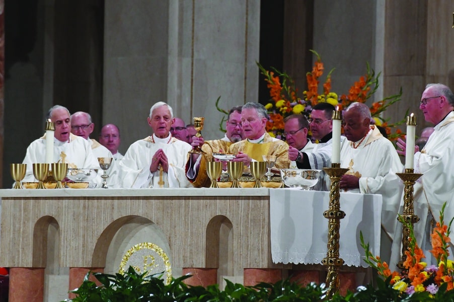 At Mass to open convention, Knights urged to commit to ‘holiness, unity, charity, fraternity’ August 6, 2025By Richard Szczepanowski Special to the Catholic Review Filed Under: Feature, Knights of Columbus, News, World News The fraternity fostered by the Knights of Columbus “contributes to our unity” and helps Knights grow in holiness and build up the Body of Christ, members of that Catholic fraternal organization were told at an Aug. 5 Mass to open their annual convention. “As good and faithful Knights, we recognize the importance of our personal commitment to growth in holiness, unity, charity and fraternity,” said Archbishop Timothy P. Broglio, who leads the Archdiocese for the Military Services, USA and serves as the president of the United States Conference of Catholic Bishops. He offered a prayer that “these days of deliberation (at the convention) will be a time of consolidation, growth and renewed friendship.” At center, Archbishop Timothy P. Broglio (center), head of the Archdiocese for the Military Services, USA and the president of the U.S. Conference of Catholic Bishops, celebrates an Aug. 5 Mass at the Basilica of the National Shrine of the Immaculate Conception in Washington, D.C. to open the Knights of Columbus’s 143rd Supreme Convention. At the altar are (from left) Cardinal Daniel DiNardo, the former archbishop of Galveston-Houston; Cardinal Donald Wuerl, archbishop emeritus of the Roman Catholic Archdiocese of Washington; Archbishop Broglio; Cardinal Wilton Gregory, archbishop emeritus of the Roman Catholic Archdiocese of Washington; and Cardinal Timothy Dolan, the archbishop of New York (Courtesy Patrick Ryan/Catholic Standard) Archbishop Broglio celebrated a votive Mass for Pope Leo XIV at the Basilica of the National Shrine of the Immaculate Conception to open the Knights of Columbus’s 143rd Supreme Convention, which is being held Aug. 5-7 in Washington, D.C. The gathering includes meetings, opportunities for Eucharistic Adoration, Confession, additional Masses, exhibitions and other events. “We begin our days together in the nation’s capital with a perfect prayer for our new Holy Father who has, in his brief pontificate, often returned to the message of unity,” Archbishop Broglio said. Calling the pope, “the foundation for unity and truth,” the archbishop noted that “fundamental to charity is the truth – it is the first rule of pastoral care.” He urged those at the Mass not to be “led astray by every new thought and idea that springs from someone’s imagination.” “We are to be motivated by the truth and love according to the truth,” Archbishop Broglio said. “We depend on Peter (the pope) to confirm us in that faith.” He said that from the time of the Apostles there has been an effort “to allow the faithful transmission of the Gospel and the confirmation of the community in unity.” “Do we not pray for Pope Leo this morning so that he might have the strength and valor to confirm us in truth?” Archbishop Broglio asked. “We pray that Leo will always be heard as an apostle of the truth.” More than 2,000 Knights and their family members attended the Mass that was concelebrated by more than 80 priests and more than 40 bishops, archbishops and cardinals. Attendees at the Mass came from almost every state and Puerto Rico and as far away as Canada, Mexico, Poland, Ukraine, South Korea and other nations. For John Winfrey, a Knight of Columbus from Maryland, Mass is a fitting start to open the gathering because “we begin our supreme convention the way we open everything – with praise to God. It puts us in the right frame of mind.” For Marcos Colón, a Knight from Puerto Rico, the convention is important because “we need to learn from and join in prayerful fraternity with our brother Knights.” Reminding the Knights that “we live that fraternity upon which (founder) Blessed Michael McGivney based our order,” Archbishop Broglio noted that “no one in need is a stranger to us.” Knights of Columbus members from most U.S. states and several other countries gathered Aug. 5 for a Mass at the Basilica of the National Shrine of the Immaculate Conception in Washington, D.C. to open that fraternal organizations’ 143rd Supreme Convention. Courtesy Patrick Ryan/Catholic Standard) “That is why we see Knights passing out winter coats, giving primary necessities to our beleaguered brothers and sisters in Ukraine, caring to the wounded in Lourdes and in so many other situations where the love of God urges us to make charity a part of our name.” In his homily, Archbishop Broglio noted that “people are constantly writing to the bishops of this country to tell us what we are doing wrong, what payers we should have people say … how terrible the government is, how beneficial it is, that we are engaged in politics, that we do not condemn politicians enough, and so forth.” In the face of that, he said, the faithful must remain united. Pointing to the motto of Pope Leo, In Illo uno unum – “In the One (Christ) we are one” – the archbishop said that such unity “is the path to perfection in the Apostles and so also for all of humanity.” “Unfortunately, the current world situation reminds us continually of the work to be done – peace and civility to be restored, and care to be extended to the poor, to the lost and to those on the margins,” he lamented. Noting that the new pope was “born on our shores,” Archbishop Broglio called Pope Leo “a citizen of the world,” because “as pastor for the Universal Church, he belongs to us all.” “We pray for him and await his guidance as we delve more deeply into the mystery of our Christian vocation,” the archbishop said. Referring to the Mass’s readings from Ezekiel 34:11-16, Ephesians 4:11-16 and the Gospel of John 17:11, 17-23, Archbishop Broglio said they “speak to us about the immense love of God for each human person… the passionate intere