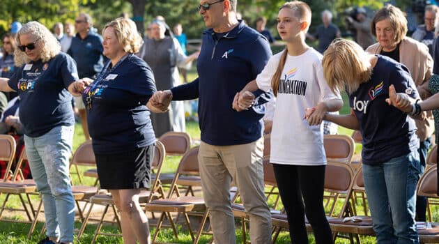 Hope, healing highlight prayer service and Mass a month since Annunciation shooting September 30, 2025By Joe Ruff OSV News Filed Under: Feature, Gun Violence, News, World News Sharing hugs, tears and smiles, more than 150 people gathered on the lawn outside Annunciation Catholic Church and School in Minneapolis for a morning prayer service Sept. 27.