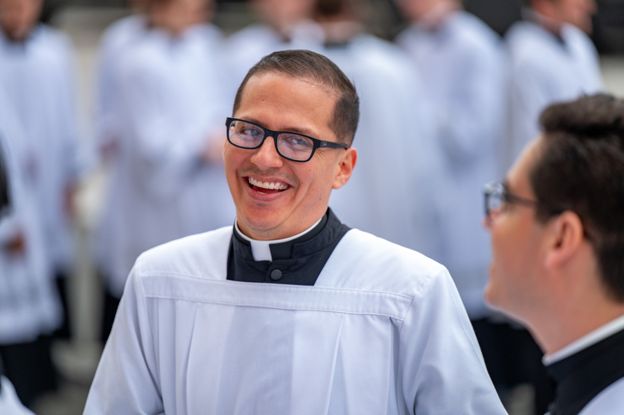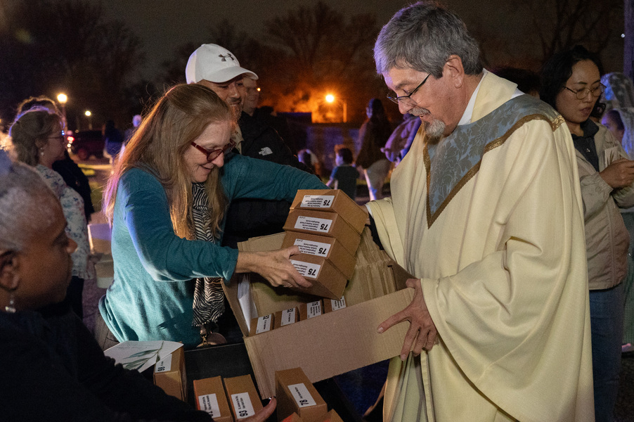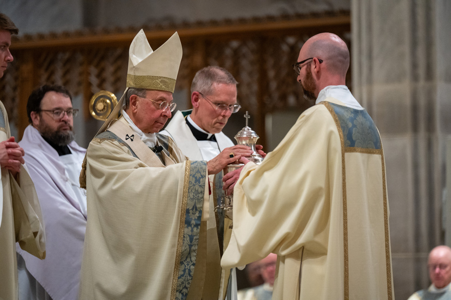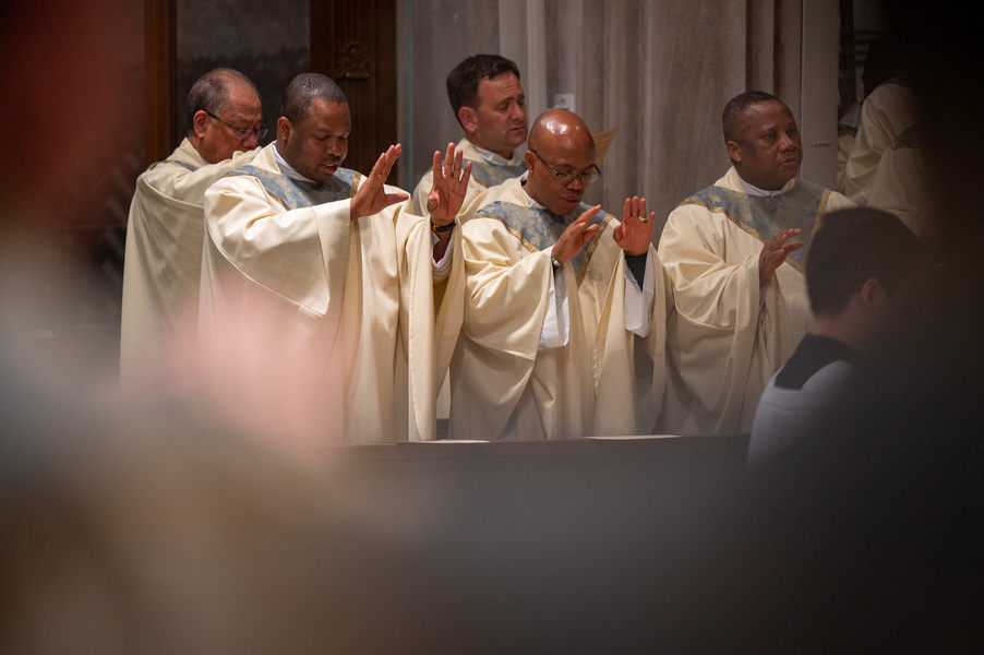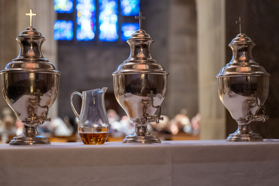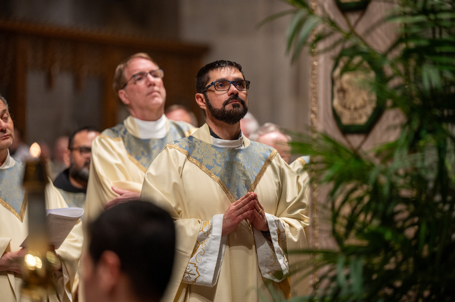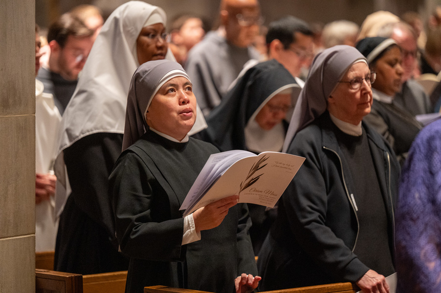 Baltimore Chrism Mass draws 1,400 to witness to ‘liberating power of God’ March 31, 2026By Christopher Gunty Catholic Review Filed Under: Archbishop's Ministry, Easter, Feature, Local News, News, Worship & Sacraments The five men who will be ordained to the priesthood in June each had a special role in the chrism Mass March 30 at the Cathedral of Mary Our Queen in Homeland. Three carried the oils that would be blessed in the Mass, one preached the Gospel and another assisted Archbishop William E. Lori at the altar. Before the Mass, Deacon Alexander Kulik said it is significant to be able to present the oil of the sick to the archbishop for blessing, since within a few months, he will use that same oil to anoint those who are ill. Archbishop William E. Lori breathes into the vessel of chrism as he calls down the Holy Spirit holy oils during the March 30 chrism Mass at the Cathedral of Mary Our Queen in Homeland. (Kevin J. Parks/CR Staff) Deacons Connor Schmidt and Stephen Kirby brought up the chrism and the balsam to be added to it, respectively. Deacon Schmidt said presenting the oil with which he and his fellow deacons would be ordained a priest “is an honor; it’s humbling. … it’s surreal.” Deacon Kirby said, “The sacraments are beautiful channels of grace and we use oil in a lot of them. To me, this is a day we’re going to reflect on how we constantly use these oils to bring grace into people’s lives, and that’s something that as priests we will get to witness a lot of.” Deacon Andrew Lacovara, a permanent deacon and the archbishop’s delegate for the Urban Vicariate, presented the oil of the catechumens at the Mass. Deacon Christopher Yeung, the delegate for the Western Vicariate and also a permanent deacon, and Deacon Russ Sullivan, who will be ordained in June, assisted the archbishop at the altar. Deacon Robert “Tre” Bart III proclaimed the Gospel. The incorporation of the deacons into the Mass, attended by about 1,400, emphasized the role of service closely connected to the archbishop as part of the solemn liturgy, which has three primary focuses: the renewal of priestly promises; the blessing of oils and the consecration of the chrism; and gathering the laity, especially those who will enter the Church at the Easter Vigil, to enter into Holy Week. Conventual Franciscan Brother Edward Handy, a Catonsville native living at St. Casimir in Canton who has been a religious friar for 64 years, attends the chrism Mass every year. “Well, it’s always good to go to Mass, but this is such a special one, you know?” he said. As he enters Holy Week, he is praying for peace in the world and for leaders of countries; for the needs of all people, especially the poor; and for priestly vocations. Augusto Frisancho and Maria Browne were saving places for eight of their fellow members of the Basilica of the National Shrine of the Assumption of the Blessed Virgin Mary before the Mass. Frisancho said the Mass is important because all the oils to be used throughout the year in parishes would be made sacred. “And so many priests attend, the blessings of so many priests” made the Mass a priority for members of the parish. Oil is prepared for blessing at chrism Mass, March 30, 2026, at the Cathedral of Mary Our Queen on Homeland. (Kevin J. Parks/CR Staff) Browne said this was the first chrism Mass for her. She has been learning about the oils and then plans to attend the Easter Vigil at the Baltimore Basilica to see them put to use. “I wanted to get the full experience,” she said. In his homily, Archbishop Lori especially addressed the priests as he acknowledged that ministry may sometimes feel like an ever-expanding universe, with no limit to the needs and expectations placed on them. “Our day is spoken for almost as soon as we get out of bed in the morning. The demands of ministry can absorb the time we try to set aside for prayer, reading and study, for exercise and for rest,” he said. “While the universe of ministry keeps on expanding, our private world sometimes seems to be shrinking. Unless we are vigilant, anger and frustration may overtake us, or we may even find ourselves simply going through the motions.” Being run ragged by the expanding demands for their ministry may cause someone to miss out on the liberating message from Jesus captured in the reading from Luke’s Gospel which is always the selection for the chrism Mass. In the passage, Jesus reads from the prophet Isaiah: “The Spirit of the Lord is upon me, because he has anointed me to bring glad tidings to the poor. He has sent me to proclaim liberty to captives and recovery of sight to the blind, to let the oppressed go free, and to proclaim a year acceptable to the Lord” (Lk 4:18-19). Jesus then tells the congregation in Nazareth that the Scripture “is fulfilled by your hearing.” The archbishop noted that he has preached on the same Gospel passage at chrism Masses for 25 years. “After all these years, I still say to myself, ‘What a message!’ It’s brimming with the liberating power of God over human infirmity, sinfulness and self-imposed captivity,” Archbishop Lori said. “It’s brimming with hope and joy and the promise of true freedom.” Seminarians are recognized with applause by parishioners as Archbishop William E. Lori thanks them for their commitment to the church at the conclusion of chrism Mass March 30 at the Cathedral of Mary Our Queen in Homeland. (Kevin J. Parks/CR Staff) He told the priests that he and they have been anointed by the Spirit and sent to continue the healing and liberating mission of Jesus. “The headwinds can be strong and the obstacles many, but when we allow the Lord to liberate us from sin, from fear, from egotism, from attachments – then we are credible witnesses, for we have internalized the Gospel of freedom we preach. “Then do we radiate to our good co-workers in ministry and to all we serve a joy, a peace, a loving presence unc