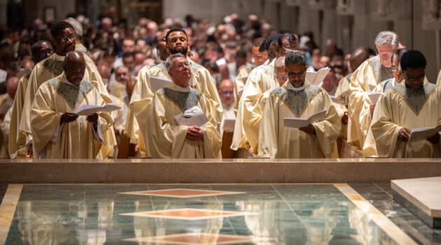 Baltimore Chrism Mass draws 1,400 to witness to ‘liberating power of God’ March 31, 2026By Christopher Gunty Catholic Review Filed Under: Archbishop's Ministry, Easter, Feature, Local News, News, Worship & Sacraments The five men who will be ordained to the priesthood in June each had a special role in the chrism Mass March 30 at the Cathedral of Mary Our Queen in Homeland. Three carried the oils that would be blessed in the Mass, one preached the Gospel and another assisted Archbishop William E. Lori at the altar.