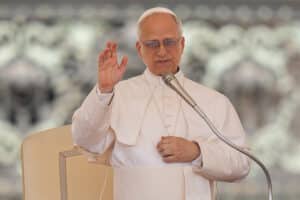 Pope Leo also said the Gospel story makes clear that Jesus does not go and lift Bartimaeus up, but encourages him to stand on his own, knowing that “he can rise from the throes of death.”