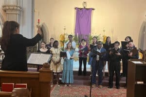 Rebecca Rossello, a Baltimore-based soprano and choral teacher, directed a diverse choir of 12 young adult men and women. Songs included “All Things New” (E. Hagenberg), “Come to Me” (D. Forrest) and “I Heard the Voice of Jesus Say” (Horatius Bonar).