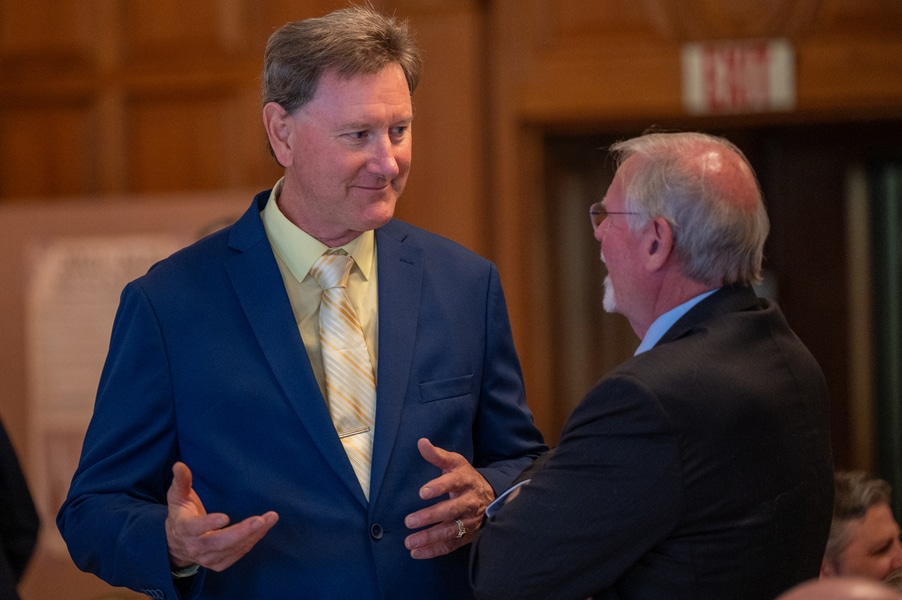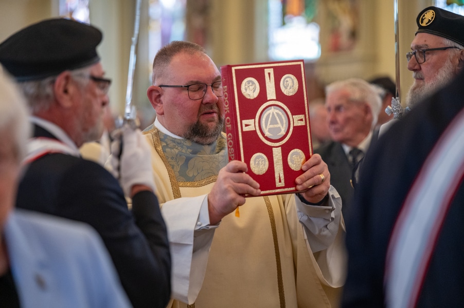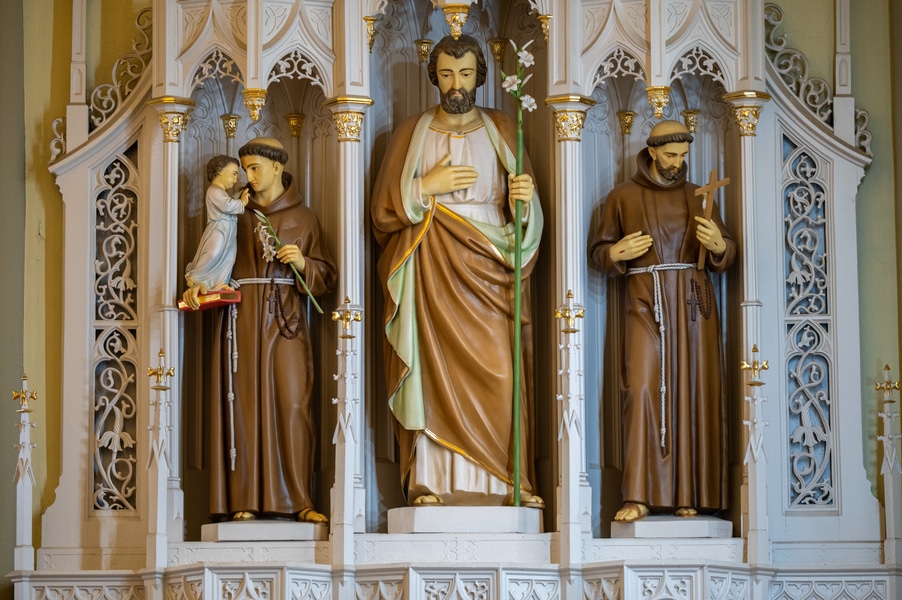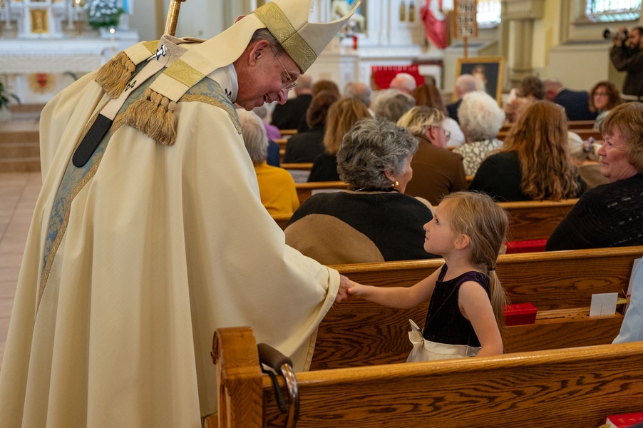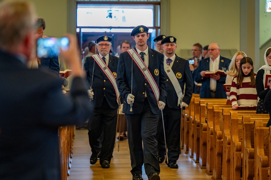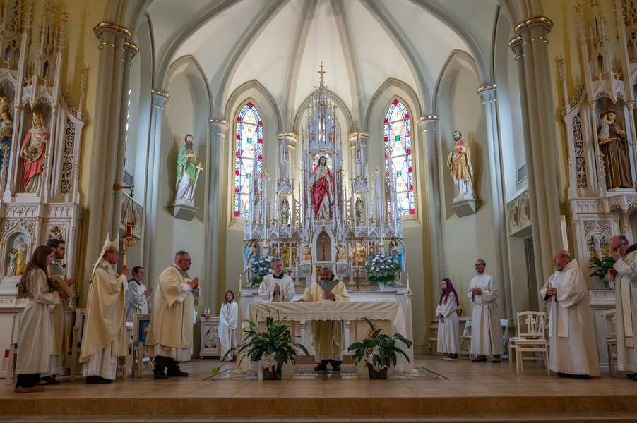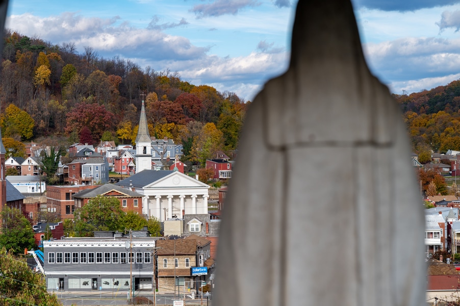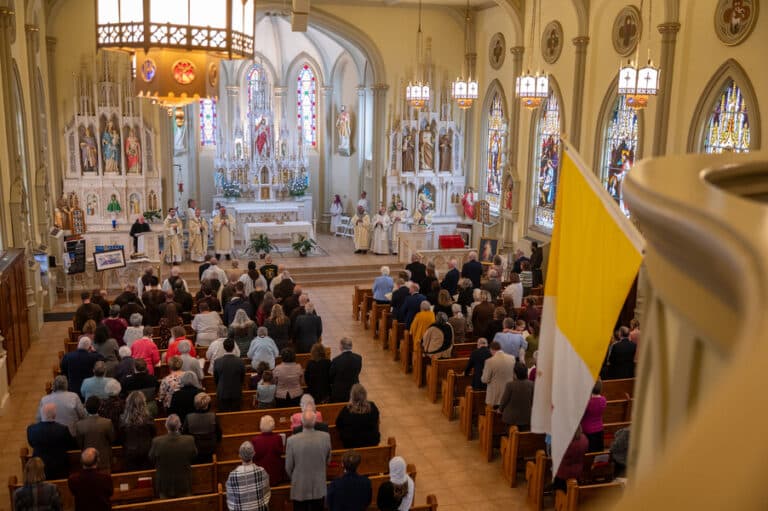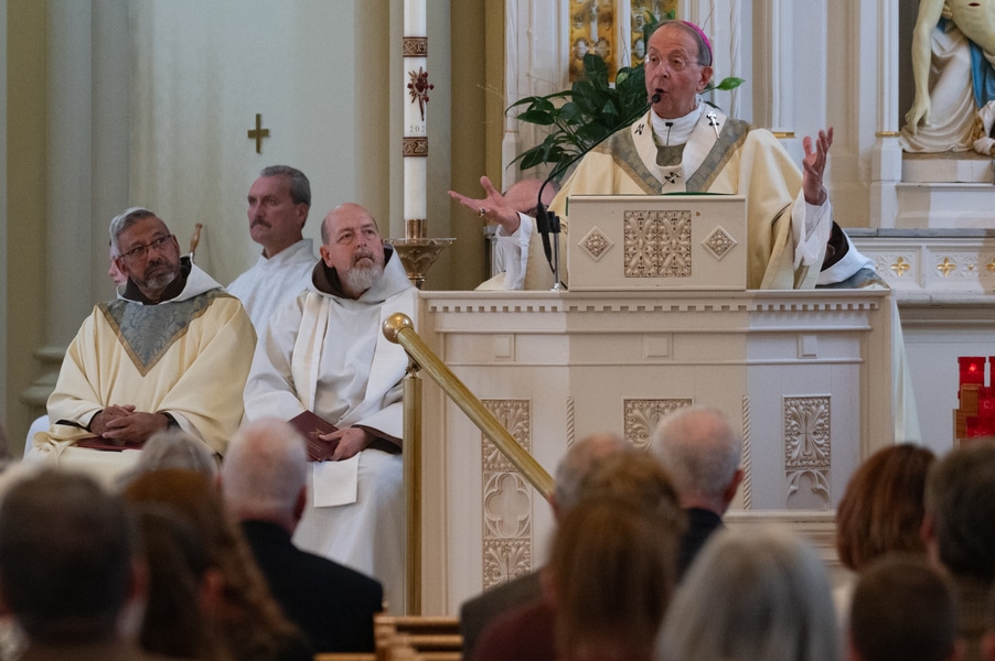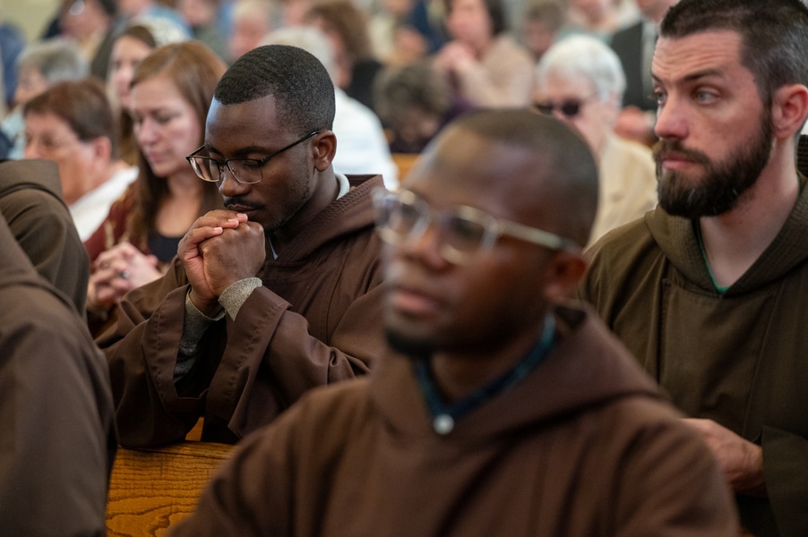 Capuchins celebrate 150 years of ministry in Cumberland November 3, 2025By Katie V. Jones Catholic Review Filed Under: Feature, Local News, News, Western Vicariate CUMBERLAND – At Our Lady of the Mountains Parish, families proudly trace their membership in the Shrine of Ss. Peter and Paul through the generations and share stories about their great-great-great grandparents. Those families are just as quick to include the Capuchin Franciscans in their stories. Members of the Capuchin Franciscan Order concelebrated Mass Nov. 1 with Archbishop William E. Lori to mark the 150th anniversary of the arrival of the Friars to Cumberland. The Mass was held at the Shrine of Ss. Peter and Paul. (Kevin J. Parks/CR Staff) While the church was built by the Redemptorists in 1848 and then purchased by the Carmelite Friars in 1866, it was the Capuchins in 1875 who settled in to stay. Archbishop William E. Lori celebrated the 150th anniversary of the Capuchins’ arrival with a special Nov. 1 Mass at Ss. Peter and Paul on the Feast of All Saints. At the same time, he officially installed Capuchin Franciscan Father Stephen Fernandes as pastor of Our Lady of the Mountains, which includes Ss. Peter and Paul, St. Patrick and St. Mary in Cumberland. “It is a lot to celebrate, and I am so happy to do it with all of you,” Archbishop Lori told a full crowd at the shrine, many of them friars, recognizable by their long-hooded brown robes. A branch of the Franciscan order, the Capuchins are devoted to prayer and service to the poor. The liturgy was followed by an outdoor reception and a formal dinner reception. “The rich history that is St. Francis is alive here just as much as it was 150 years ago, and that life continues to breathe life into our congregation, our community,” said Larry Smith, whose daughter is a sixth-generation member. “We’re coming up on 250 years of the anniversary of the celebration of the republic of the United States and just 100 years into that, that is when this community started. That vibrant community continues to be alive today because of the devoted dedication of those wonderful men in brown who lead us, who love us, who teach us, who inspire us and who lift us up in every way.” Archbishop William E. Lori presents the key to the Shrine of Ss. Peter and Paul in Cumberland to Capuchin Franciscan Father Stephen Fernandes during his installation as pastor of the Cumberland parish Nov. 1. (Kevin J. Parks/CR Staff) Archbishop Lori said the Capuchin friars arrived in Cumberland with few possessions but with a “rich legacy of holiness” and, in the words of Pope John Paul II, they were “rich in love.” “What did the Capuchins do with this love? They invested their love in you, the people of God, as they served in parishes, classrooms, prisons, soup kitchens, hospitals,” Archbishop Lori said. “The Capuchin men, including here in Mountain Maryland, reached out to God’s people in every walk of life, mostly hard-working families, many of them immigrants. … Out of their poverty, the Capuchins served the world generously.” German Capuchins, Fathers Anton Schuermann and Franz Wolff, purchased the property on Holy Hill, and installed the church’s altars, all hand-carved by friars. They welcomed the mostly German Catholic community and other Capuchins exiled from Europe. Over the years, a minor seminary was built and a school. The community was self-sufficient, growing its own fruits and vegetables, and raising cows and chickens. Capuchin Franciscan Father Blaine Burley shares a portion of the 150-year history of the Friars at the Shrine of Ss. Peter and Paul in Cumberland during a dinner celebration at the Allegany Museum Nov 1. (Kevin J. Parks/CR Staff) “We are happy to have the opportunity to honor the Capuchins for their service to the community,” Joe George, president of the Friends of the Shrine of Ss. Peter and Paul, said in an interview. “They have been spiritual leaders for so long. They are involved with the poor, the food pantry.” The friars helped support the creation of St. John Neumann School, which merged with Bishop Walsh High School in 2002. The monastery was razed in 1995. Today, only the shrine remains of the original Ss. Peter and Paul’s Parish the Capuchins purchased in 1875. The friars reside at St. Mary. “The friars have been wonderful through the years. It is so nice they came back. This place left a mark on them,” Julia Kidwell, a fifth-generation parishioner said at the outdoor reception following Mass. “They are such a wonderful blessing for all of us.” Hilda Miltenberger, 84, used to cook evening meals for the friars as well as extra meals to hold them over on weekends. “They loved my home cooking,” Miltenberger said, proudly. “They had special guests in one night and each wanted their steaks different. I had to get a cookbook out for rare steak to see how much to cook them. I was very pleased I did that for them.” Joe George, president of the Friends of the Shrine of Ss. Peter and Paul, left, Capuchin Franciscan Father Stephen Fernandes, pastor, and Mayor Raymond M. Morriss enjoy conversation during a dinner celebrating the 150th anniversary of the Capuchin Franciscan community in Cumberland Nov. 1. (Kevin J. Parks/CR Staff) At the beginning of the anniversary Mass, Archbishop Lori gave the keys to the shrine to Father Fernandes. He then renewed his vows to the applause of all present. “I don’t have any words,” Father Fernandes said, afterward. “I’m following the footsteps of men who have gone before me 150 years ago.” Since his appointment to Cumberland in July, Father Fernandes has started celebrating a Spanish Mass on the second and fourth Sunday of the month. While he has only held three as of Nov. 1, the Mass attracts roughly 30 people, including families who have enrolled their children into programs, he said. “I hope to continue to build and serve them,” Father Fernandes said. A formal dinne