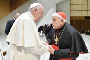 “Now at 95, he continues to work for the church without being discouraged. Dear brother, I thank you for your witness,” Pope Francis said.