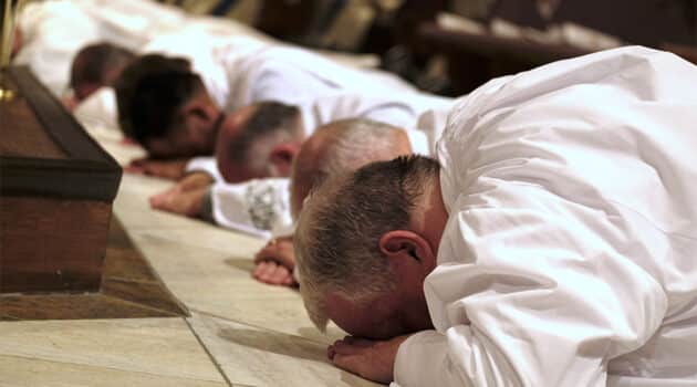 Diaconate is ‘surrender’ to Jesus, U.S. archbishop says at ordination Mass October 3, 2024By Justin McLellan Catholic News Service Filed Under: deacons, News, Vatican, Vocations, World News Before the Altar of the Chair in St. Peter’s Basilica, a symbol of the Catholic Church’s unity behind the successor of St. Peter, 15 men laid prostrate to express their humility and take vows of chastity and obedience to their bishop.
