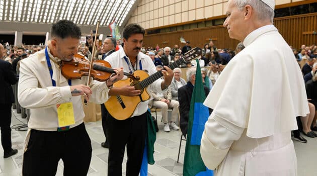 Pope thanks Roma, Sinti, Travelers for witness of faith amid hardships October 21, 2025By Cindy Wooden Catholic News Service Filed Under: Ecumenism and Interfaith Relations, News, Vatican, World News Often literally pushed to the margins of cities and even parish life, Catholic members of the Roma, Sinti and Traveling communities are models of steadfast faith in the face of adversity, Pope Leo XIV said.
