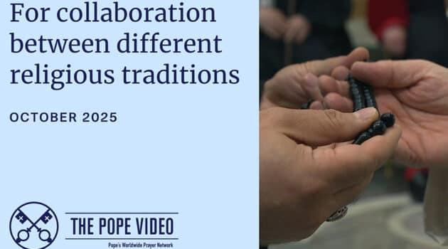Pope’s October prayer intention celebrates ‘Nostra Aetate’ September 30, 2025By Cindy Wooden Catholic News Service Filed Under: Ecumenism and Interfaith Relations, News, Vatican, World News Pope Leo XIV has asked Catholics to join him in praying that members of different religions would work together to make life better for everyone rather than allowing their different beliefs to be used “as weapons or walls.”