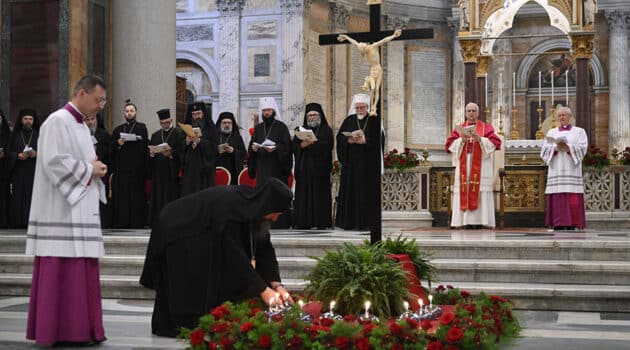 Nicene Creed presents ‘the mystery that unites’ Christians, pope says June 9, 2025By Cindy Wooden Catholic News Service Filed Under: Ecumenism and Interfaith Relations, News, Vatican, World News Recognizing the essential tenets of faith that Catholics and Orthodox share should be the lens through which they discuss the issues that continue to separate them, Pope Leo XIV said.