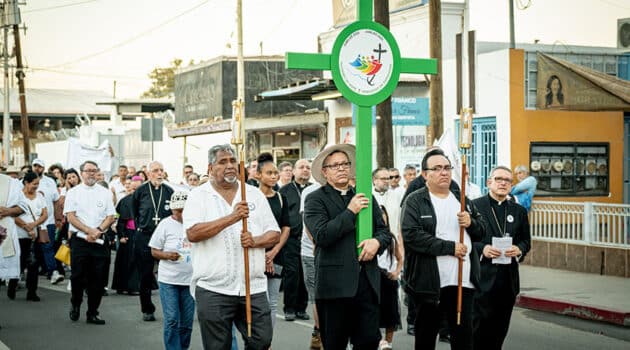 Bishops call for solidarity with immigrants in binational pilgrimage and Mass October 15, 2025By OSV News OSV News Filed Under: Immigration and Migration, News, World News As the sun set over the international border a small cadre of Catholic bishops processed toward Mexico. Flanked by priests, religious brothers and sisters, laity and immigration advocates, the U.S. prelates walked along Main Street in San Luis Oct. 12.