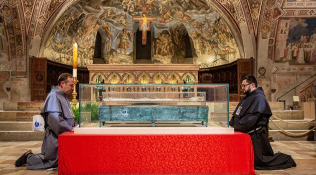 St. Francis’ relics returned to crypt after monthlong veneration draws 370,000 pilgrims March 23, 2026By Courtney Mares OSV News Filed Under: News, Saints, World News Bells rang out over the hilltop town of Assisi on the night of March 22 as Franciscan friars closed the monthlong public veneration of the bones of St. Francis of Assisi, which drew more than 370,000 pilgrims from around the world to pray before the beloved saint.