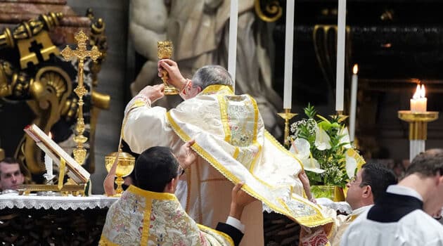 Cardinal Burke celebrates traditional Latin Mass in St. Peter’s Basilica October 27, 2025By Cindy Wooden Catholic News Service Filed Under: News, Vatican, World News, Worship & Sacraments In the presence of hundreds of priests and with lay faithful packed into the pews and standing along the walls, U.S. Cardinal Raymond L. Burke celebrated the traditional Latin Mass at the Altar of the Chair in St. Peter’s Basilica.