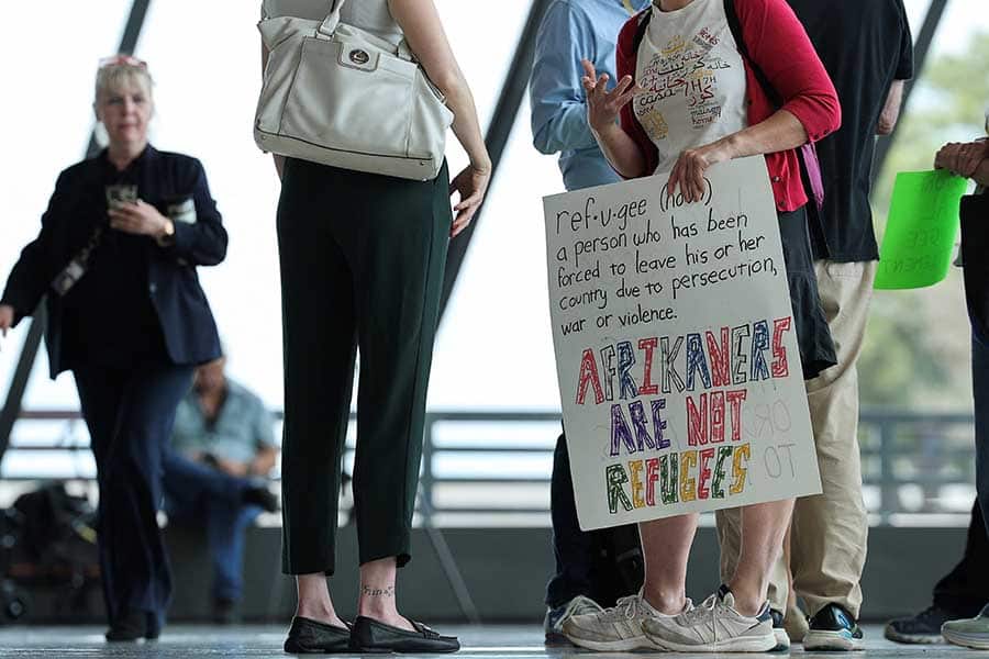 Catholic Charities tasked with Afrikaner travel fees as Trump keeps other refugees in limbo May 13, 2025By Gina Christian OSV News Filed Under: Catholic Charities, Immigration and Migration, News, World News Catholic Charities of the Diocese of Arlington has confirmed to OSV News that its offices are assisting with some travel expenses, at the request of the state of Virginia, for dozens of white South Africans known as Afrikaners, whose refugee applications were expedited by the Trump administration due to what the White House called “racial discrimination.” The administration’s fast-tracking of the Afrikaner applications comes amid its own indefinite suspension of the U.S. Refugee Admissions Program until “further entry into the United States of refugees aligns with the interests of the United States.” The administration has also ended protections for other groups of migrants, such as those from Cuba, Haiti, Nicaragua and Venezuela, majority-Catholic countries where violence, political and economic instability are endangering millions, as well as those fleeing Taliban-controlled Afghanistan. A plane carrying the first group of white South Africans granted refugee status for being deemed victims of racial discrimination under U.S. President Trump’s Refugee plan, arrive at Dulles International Airport in Virginia May 12, 2025. (OSV News photo/Jonathan Ernst, Reuters) A flight carrying an initial group of 59 Afrikaner refugees landed in Washington May 12. The State Department called the relocation, directed by Secretary of State Marco Rubio, “a “tremendous accomplishment” that “responds to President Trump’s call to prioritize U.S. refugee resettlement of this vulnerable group facing unjust racial discrimination in South Africa.” It said the move was “in alignment with the administration’s America First foreign policy agenda.” “No one should have to fear having their property seized without compensation or becoming the victim of violent attacks because of their ethnicity,” it stated. “In the coming months, we will continue to welcome more Afrikaner refugees and help them rebuild their lives in our great country.” In a statement provided to OSV News, Catholic Charities of the Diocese of Arlington said that it was “providing limited and temporary assistance to South Africans traveling through Dulles International Airport this week to final destinations elsewhere.” The agency said it was doing so “at the request of the Virginia Office of New Americans” — an office established by the commonwealth in 2000 that comprises both immigrant and refugee service divisions — “which is working with the U.S. State Department.” In response to questions from OSV News, Catholic Charities said it was “asked to provide luggage fees for the South Africans’ next domestic flight to their final destination,” doing so “on behalf of the Commonwealth which is reimbursing us for the service and expenses. “No further assistance from us is requested for this group,” said the agency. The aid comes amid a lawsuit filed by the U.S. Conference of Catholic Bishops against the Trump administration for terminating a long-standing contract with the USCCB for refugee resettlement. The termination of the refugee resettlement contract has led to mass layoffs of Catholic Charities employees involved in refugee resettlement all over the U.S. The case, opened in February, is now on appeal, after U.S. District Judge Trevor McFadden ruled against the USCCB, saying the court did not have the authority to provide the emergency relief — including some $13 million in federal funding — the bishops requested. Arlington’s Catholic Charities said Virginia’s Office of New Americans was “aware of the USCCB lawsuit” and that the USCCB was in turn aware of the agency’s aid to the South African group. The agency added, “This process has no bearing on USCCB’s lawsuit.” A person holds a sign on the day people from the first group of white South Africans granted refugee status for being deemed victims of racial discrimination under U.S. President Trump’s Refugee plan, arrived at Dulles International Airport in Virginia May 12, 2025. (OSV News photo/Kevin Lamarque, Reuters) OSV News is awaiting a response to its request for comment from the USCCB. Another faith-based migration outreach, Episcopal Migration Ministries, refused a federal government directive to assist in the South African resettlement under the terms of the ministries’ federal grant. “In light of our church’s steadfast commitment to racial justice and reconciliation and our historic ties with the Anglican Church of Southern Africa, we are not able to take this step,” wrote presiding Bishop Sean W. Rowe of the Episcopal Church in a May 12 letter. “Accordingly, we have determined that, by the end of the federal fiscal year, we will conclude our refugee resettlement grant agreements with the U.S. federal government.” Rowe explained he wanted “to be very clear about why we made this decision.” “It has been painful to watch one group of refugees, selected in a highly unusual manner, receive preferential treatment over many others who have been waiting in refugee camps or dangerous conditions for years,” Bishop Rowe said. He pointed to “brave people who worked alongside our military in Iraq and Afghanistan and now face danger at home because of their service to our country. “I also grieve that victims of religious persecution, including Christians, have not been granted refuge in recent months,” said Rowe in his letter. On May 12, the same day the U.S. government flew in the Afrikaner refugees, Secretary of Homeland Security Kristi Noem announced Afghans with temporary protections from deportation would have to return to their home country by July 12 owing to “an improved security situation, and its stabilizing economy.” Church World Service president and CEO RIck Santos said i