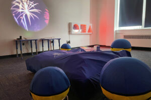 Installed in a quiet, second-floor area of the school, the new sensory room is filled with specialized visual, auditory and tactile equipment designed to help students self-regulate, manage anxiety and build coping skills.