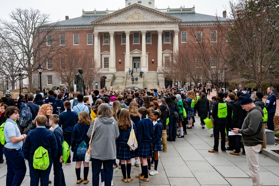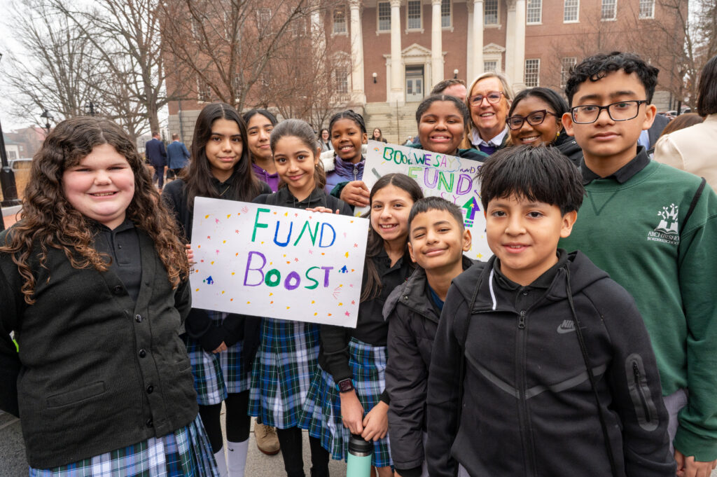 Catholic students promote support for nonpublic school students in Maryland March 6, 2026By Katie V. Jones OSV News Filed Under: Feature, Local News, Maryland General Assembly, News, Schools ANNAPOLIS – More than 300 students representing schools in the Archdiocese of Baltimore as well as other Catholic and nonpublic schools across Maryland gathered March 5 at Lawyer’s Mall near the State House in Annapolis, waving posters and chanting in support of educational initiatives as part of Nonpublic Schools Advocacy Day. Hundreds of students and administrators from private schools in the Maryland region attend the annual Nonpublic Schools Advocacy Day on Lawyer’s Mall, located at the foot of the State House in Annapolis, March 5. (Kevin J. Parks/CR Staff) “B, O, O, S, T. Come join us in our advocacy,” Nicholas Ferraioli, 12, a sixth grader at St. Mark School in Catonsville, shouted with confidence as he led the crowd in two rounds of chants. “Everyone deserves an education,” Nicholas said, as he rejoined his group. Students were advocating for the BOOST (Broadening Options and Opportunities for Students Today) scholarship program, which provides financial assistance to help children from low-income families attend Catholic and other nonpublic schools. Gov. Wes Moore’s (D) proposed budget includes $9 million for the program – the same amount approved by the General Assembly in the previous legislative session. The funding must again be given a thumbs-up by lawmakers. “In continuously tough fiscal climates for our state government, we are thankful that the governor has proposed level funding for low-income students for BOOST scholarships,” said Garrett O’Day, deputy director of the Maryland Catholic Conference, the legislative advocacy organization of the state’s Catholic bishops. O’Day said advocates also hope lawmakers recognize the potential benefits of a new federal education tax credit when meeting with students. Sophia Duclos, center, and her fellow students, celebrated her first-place achievement for her poster commemorating the 250th anniversary of the United States March 5, outside the State House in Annapolis. The group, along with other students from the region, took part in the annual Nonpublic Schools Advocacy Day on Lawyer’s Mall. (Kevin J. Parks/CR Staff) President Donald J. Trump signed into law a bill passed last year by the U.S. Congress that includes a provision creating a new federal tax credit for individuals who make donations to 501(c)(3) public charities providing scholarships to elementary or secondary school pupils. The provision may encourage greater donations to Catholic nonprofit organizations that fund K-12 scholarships, which could expand the number of scholarships offered and improve access to Catholic education. “We hope that a big takeaway for legislators when talking with their students this year was how much the federal education tax credit could help both public and nonpublic school students,” O’Day said. “If Maryland opts into that program, at least $500 million in education dollars could come to Maryland students and, this year, our students were thus advocating for all of their peers, both public and nonpublic, in that regard.” Students also met with lawmakers to advocate for continued support for programs that help maintain aging school buildings and provide funding for nonreligious textbooks and technology. “Our students are the best lobbyists,” O’Day said. “I’m always surprised how willing the students are to engage with their law makers.” Nonpublic Schools Advocacy Day has taken place in some form for about 15 years, O’Day said. Dani d’Epagnier, from left, an art teacher; Deborah Thomas, principal; Sister Patricia McCarron, archdiocesan superintendent of schools; and Lizz Anacker, director of admissions and advancement, gathered March 5 at the State House in Annapolis to be presented resolutions by the Maryland State Senate and House of Delegates in recognition of St. Louis School, Clarksville, Maryland Blue Ribbon School designation earlier this year. (Kevin J. Parks/CR Staff) “Students advocate for the schools with our state legislators,” O’Day said. “It’s really important that both sides of the aisle hear the everyday concerns of all their constituents.” Ashley Davis, advancement director at Mother Mary Lange Catholic School in West Baltimore, called it “extremely important to bring students to the annual event. Nearly a quarter of her school’s students receive BOOST funding, and the school relies on state support for the purchase of nonreligious textbooks and curriculum updates. “It’s a good learning moment,” Davis said. “Just advocating and keeping it going. We have to be able to move with what’s going on and there are a lot of changes with the Department of Education.” When Delegate LaToya Nkongolo (R-District 31) addressed the students with a bullhorn, she asked whether anyone from Our Lady of Mount Carmel School was present. Her daughter graduated from the Essex school in 2024. “She had an amazing experience there. You know we live in Anne Arundel, but it was well worth the trip to Essex for four years,’” Nkongolo said. “Our Lady of Mount Carmel, they prepared her well, we were grateful for the opportunity for her to be educated there.” Although Nkongolo’s daughter did not receive a BOOST scholarship, many of her classmates did. Amy Belz, principal of Archbishop Borders School in Baltimore, seen third from the right, along with some of her students attend the annual Nonpublic Schools Advocacy Day. (Kevin J. Parks/CR Staff) “These are young people who are now in college, you know, because the private school education prepared them for college,” Nkongolo said. The day also included recognition of St. Louis School in Clarksville as a state Blue Ribbon school. “What an amazing day to be here at the State House in Annapolis to celebrate our awesome 