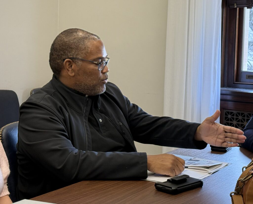 Católicos de Baltimore llevan la voz de los migrantes al Capitolio de los Estados Unidos March 7, 2026By Marietha Góngora V. Special to the Catholic Review Filed Under: En Español In English WASHINGTON – “Piden ayuda y lo único que puedo decirles es: ‘Los escucho. Los escucho’”, dijo el diácono Seigfried Presberry al describir las llamadas telefónicas que recibe de familias después de que un ser querido ha sido detenido por las autoridades de inmigración. El diácono Presberry, coordinador del ministerio penitenciario de la Arquidiócesis de Baltimore, compartió esas conversaciones con un asistente de la senadora demócrata de Maryland Angela Alsobrooks durante las reuniones celebradas en el Capitolio el 5 de marzo. Algunos miembros de una delegación de la Arquidiócesis de Baltimore se reúnen con el senador demócrata Chris Van Hollen de Maryland en Washington, D.C., el 5 de marzo de 2026, para abogar por los derechos de los inmigrantes. (Cortesía de Yvonne Wenger). Las llamadas, explicó, suelen provenir de familiares desesperados que buscan a alguien que pueda comunicarse con su familiar detenido o brindarles apoyo espiritual. Su testimonio formó parte de una jornada más amplia de defensa de la inmigración en Washington, que reunió a delegaciones católicas de varias diócesis con miembros del Congreso. La Arquidiócesis de Baltimore envió una delegación compuesta por líderes religiosos, laicos y Lia García, directora de Ministerios Hispanos. Los participantes de Baltimore se dividieron en pequeños grupos para reunirse con los legisladores y su personal. Sus citas, organizadas por Michelle Zelaya, directora asociada de la Conferencia Católica de Maryland, incluyeron al senador demócrata Chris Van Hollen y a los asistentes legislativos de Alsobrooks, así como a los representantes demócratas Sarah Elfreth, Kweisi Mfume y Jamie Raskin. Durante las reuniones los delegados compartieron experiencias personales de sus ministerios e instaron a los legisladores a llevar a cabo una reforma migratoria integral que proporcione vías para la regularización y la ciudadanía a los inmigrantes indocumentados y para que se mantengan unidas a las familias. “Los obispos tienen una larga trayectoria de abogar por nuestra comunidad”, declaró García a Catholic Review, “y lo que estamos pidiendo al Congreso, a nuestros representantes, es una vía a la legalización de nuestra comunidad”. García señaló que abogaron por aquellas “personas que han vivido aquí por años, que pagan sus impuestos, que tienen familias, que tienen negocios, que han hecho sus vidas acá”. Otro asunto planteado por la delegación de Baltimore fue la necesidad de agilizar el proceso para obtener la residencia permanente y los visados R-1 para trabajadores religiosos para los sacerdotes que prestan servicio a las comunidades de inmigrantes. La Conferencia de Obispos Católicos de Estados Unidos ha promovido la Ley de Protección de la Fuerza Laboral Religiosa para abordar el problema. El padre redentorista Ako Walker, párroco de la iglesia Sagrado Corazón de Jesús en Highlandtown, habló sobre inmigración durante una reunión celebrada el 5 de marzo de 2026 en Washington, D.C. (Cortesía de Yvonne Wenger). “Tenemos varios sacerdotes que han estado varados en ese proceso, algunos que han salido del país a visitar a sus familias u otros lugares y que se les ha hecho casi imposible regresar”, dijo García, quien añadió que el grupo pidió al Congreso que revisara “todos esos procesos largos de espera y ver, si de alguna manera, pudiesen agilizarlos porque es nuestra gente la que está sufriendo”. El padre redentorista Ako Walker, párroco del Sagrado Corazón de Jesús en Highlandtown, dijo que en las reuniones también se abordaron los retos a los que se enfrentan los ministros cuando se detiene a inmigrantes. El padre Walker también es delegado arquidiocesano para los católicos hispanos. “Especialmente hablamos de lo que pasa después del arresto de un inmigrante, la dificultad de pastorear a estas personas desde el momento de su detención”, dijo el padre Walker, quien hizo énfasis en la necesidad de leyes de inmigración que respeten la dignidad de todas las personas. Los delegados instaron a los legisladores a garantizar que los detenidos puedan practicar su fe y recibir atención pastoral. Según el departamento de relaciones públicas de la Arquidiócesis de Baltimore, aunque los funcionarios del Servicio de Inmigración y Control de Aduanas de Estados Unidos (ICE) en algunos centros de detención del país han permitido a los sacerdotes celebrar la Eucaristía y proporcionar atención pastoral, ese acceso no se ha concedido a nivel local. En Baltimore, los esfuerzos de la arquidiócesis por ofrecer misa y proporcionar paquetes de ayuda a los reclusos han sido denegados y las visitas del clero han sido obstaculizadas por los funcionarios del ICE. En otros lugares, se ha concedido dicho acceso en los “centros de detención” del ICE. Sin embargo, en Maryland, los detenidos son trasladados primero a un “centro de retención” en Baltimore antes de ser trasladados fuera del estado. El Obispo Christopher R. Cooke, obispo auxiliar de la Arquidiócesis de Filadelfia, pronunció la homilía en una misa especial celebrada en la Basílica del Santuario Nacional de la Inmaculada Concepción en Washington, D.C., el 5 de marzo de 2026 en solidaridad con los inmigrantes. (Cortesía de Mihoko Owada/Catholic Standard). La delegación de Baltimore también pidió a los legisladores que apoyaran una legislación específica, incluida la Ley Frederick Douglass de Prevención y Protección de las Víctimas de la Trata de Personas. Otras delegaciones católicas de las arquidiócesis de Filadelfia y Washington y de las diócesis de Camden (Nueva Jersey) y Providence (Rhode Island) también participaron en la jornada de defensa. Entre ellas se encontraba el obispo de Provi