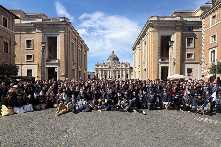 Chesterton Academy students from across U.S. make pilgrimage to Rome March 24, 2026By OSV News Vatican News Filed Under: News, Schools, Vatican, World News ROME (Vatican News) — Chesterton Academy students from across the U.S. kicked off a 10-day pilgrimage to Italy with Pope Leo XIV’s general audience in St. Peter’s Square. About 240 students from the Chesterton Schools Network, which includes over 70 classical, Catholic high schools in the U.S. and abroad, are taking part in the trip, visiting churches and pilgrimage sites in Rome, Florence and Assisi. Nora Kennedy, a student from the Chesterton Academy of the Holy Family in Illinois, described being in Rome as “the best experience” of her life. A bust of G.K. Chesterton is seen Oct. 26, 2022, in the Chesterton Archive now housed at the University of Notre Dame’s London Global Gateway in central London. Chesterton Academy students from across the U.S. kicked off a 10-day pilgrimage to Italy with Pope Leo XIV’s general audience in St. Peter’s Square March 18, 2026. (OSV News photo/Matt Cashore, University of Notre Dame) The Chesterton Rome Pilgrimage takes place each year and brings high school upperclassmen from the network’s classical schools across the United States to the Eternal City. For Kennedy, the pope’s Wednesday general audience was a particularly special moment. “Seeing (the pope) go by was so cool (and) hearing him address us in English — this I just can’t even put into words yet how impactful this has all been,” she said. This feeling is one that her classmate, Konstantinos Karnezis, shared. “Being here has honestly been such a blessing. It’s something that I’ve honestly looked forward to ever since my freshman year.” Father Joseph Johnson, the school network’s chaplain, said the group was able “to both rejoice in the Holy Father coming from our own land, but also rejoice with all the Catholics of the world here” in St. Peter’s Square in “Bernini’s great colonnade, which welcomes pilgrims from all of the world that we’re all brothers and sisters together, one family in faith.” Joe Long, president and CEO of ProRome Tours based in Front Royal, Virginia, has planned annual pilgrimages to Italy for the Chesterton schools since 2019. “Every Catholic should have the opportunity to walk where saints have walked, to pray where martyrs died, and to touch the stones that witnessed miracles,” Long said. The Chesterton Schools Network is a Catholic nonprofit apostolate dedicated to inspiring and supporting Catholic high schools around the United States and equipping parents to be the principal educators of their children. G.K. Chesterton, the English author, philosopher and apologist, became the inspiration for this network. Co-founders Tom Bengtson and Dale Ahlquist looked to the man known as the “apostle of common sense” to create a classical, integrated high school education that is affordable to all. Kennedy describes her experience studying at a Chesterton Academy as life-changing. “My favorite thing about Chesterton is that faith is at the center of everything that we do — from daily Mass, confession, adoration, but then also in my friendships and the way that Christ is at the center of all of those,” she said. The school is centered on three types of formation — intellectual, character and spiritual. Students study great works by foundational authors, such as Homer, Plato, Dante, St. Thomas Aquinas, St. Francis of Assisi and, of course, G.K. Chesterton. “I love the classical curriculum and how it teaches me how to think and how to articulate my thoughts,” Kennedy said, noting that she believes this will serve her in whatever settings throughout her life. Faith plays a central role in the overall growth of the students at the Chesterton schools. “All my classmates are oriented towards Christ and bringing me closer to him, and I do the same,” Kennedy said. This shared focus on faith and prayer, she added, deepened their friendships. “Just like Chesterton in his own day was a sign of contradiction to those around him, so we today find ourselves standing in opposition to the secularism and those other voices in our world that don’t appreciate the truth of the Gospel,” Father Johnson said. “There are too many angry voices in the world,” the chaplain added, “We want to follow Chesterton’s example of giving a witness with joy, hope, and love.” Authors Kielce Gussie and Fabrizio Peloni write for Vatican News, the official multimedia news portal of the Holy See. This story was first published by Vatican News and is distributed in partnership with OSV News. Courtney Mares, Vatican editor for OSV News, contributed to this report. Read More Vatican News Pope Leo XIV declares Boys Town founder Father Flanagan venerable Pope Leo: Death and pain caused by wars a scandal for entire human family Pope’s visit to show that Christianity is asset, not danger, for Algeria, bishop says Childhood classmates from the United States reunite with Pope Leo Pope Leo XIV meets Spanish royals at Vatican, renewing crown’s historic bond with Basilica of St. Mary Major Pope Leo XIV calls bishops to Rome to discuss marriage and family in October Copyright © 2026 OSV News Print