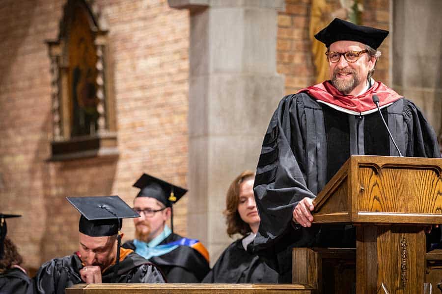 Chesterton Schools Network aims to add 22 schools worldwide this year January 31, 2026By Kimberly Heatherington OSV News Filed Under: News, Schools, World News “Without education,” said the Catholic, English writer G.K. Chesterton, “we are in a horrible and deadly danger of taking educated people seriously.” It’s classic Chesterton: a paradox packed inside a quip that amuses and yet alerts its readers to the fact that critical thinking skills, not always credentials, may be the best definition of the truly learned. And while it might seem unusual — perhaps even whimsical — that a man who didn’t earn a college degree now has his name attached to a network of over 70 Catholic high schools in the U.S. and abroad. The Chesterton Schools Network’s logo also proudly bears the likeness of Chesterton (1874-1936), who, besides being an autodidact, was an author, editor, philosopher, apologist, and literary and art critic. “The Chesterton Schools Network unites the growing interest in classical, Catholic education with the entrepreneurial spirit of faithful parents who want to be of service to the Church,” Emily de Rotstein, the Network’s executive director, told OSV News. “We’ve been growing consistently over the last few years, and our pipeline of interested start-up groups wanting to open new schools is only increasing, now internationally as well as in the U.S.” Dale Ahlquist, co-founder Chesterton Academy, is pictured in an undated graduation photo at Chesterton Academy of the Twin Cities in Hopkins, Minn. There are Chesterton schools in 30 states and 76 dioceses, with more than 3,000 students in attendance, with more anticipated openings both domestic and overseas. (OSV News photo/Chesterton Academy of the Twin Cities) “What is driving this worldwide, grassroots interest in our model, is a deep desire among parents for an integrated education for their children that is faithful, joyful, rigorous and affordable,” she added. The first Chesterton Academy — co-founded in 2008 by Tom Bengtson and Chesterton scholar Dale Ahlquist — was planted in St. Louis Park and has since moved to Hopkins, both suburbs of Minneapolis, Minn. The men were seeking an alternative to existing high school options and had a mission in mind: to offer a classical, integrated high school education faithful to the Catholic Church and affordable for families of average means. As requests mounted to replicate its model, the Chesterton Schools Network was formally established in 2013. At the beginning of 2026, there were Chesterton schools in 30 states and 76 dioceses, with more than 3,000 students enrolled. The list of schools on the Network’s website includes anticipated openings both domestic and overseas. It notes 22 schools slated to open this year, including those in as diverse locations as Tokyo; Barcelona, Spain; and Lagos, Nigeria. “Parents tell us three things matter most,” said de Rotstein. “They want a school that is unambiguously Catholic with frequent access to the sacraments. They want serious academics that form students to read, write, speak and reason well. And they want a joyful culture where students are known personally and challenged to grow in virtue. Our schools fit the bill.” But there are other enticements, too. “Parents are also attracted to our intentionally tech-free environments; students don’t have their devices distracting them all day,” explained de Rotstein. “They engage in deep, real discussions in class with our Socratic seminars and develop authentic friendships with their peers.” “I think the most impactful thing about any of our schools, though, that you feel the moment you walk in the doors, is joy,” she added. “The kids are smiling and they’re excited to be there. All subjects are taught through the lens of the Catholic faith — and the joy of the faith permeates the culture of our schools.” The Network’s model is built on three pillars: intellect (teaching the classics of Western thought); character (students are helped to grow in the four cardinal virtues of prudence, temperance, fortitude and justice); and spirituality (embracing the truth that students exist to know, love and serve God). A gold seal of sorts was recently awarded when the Chesterton Schools Network received the 2025 Yass Prize, viewed as the “Pulitzer of education innovation.” Supported by the Center for Education Reform since 2021, the $1 million prize will be used to both strengthen resources and support current schools, while launching an ambitious 15-year plan to grow to 1,000 schools worldwide by 2040. Judges were unambiguously enthusiastic about the entrepreneurial nature of the Network: “What truly differentiates CSN … is its turnkey delivery model: parent groups with no prior experience can launch a fully formed high school in as little as 18 months and at a fraction of typical startup costs … proving that a high-quality, human-centered education can scale quickly without sacrificing depth or excellence,” the award’s website stated of the Chesterton Schools Network. “These are secular educators who are recognizing that what we’re doing is transforming the options that parents have,” said Joseph Grabowski, the Network’s vice president of evangelization and mission. “We’re definitely riding the waves of this increased interest in school choice that is happening nationwide,” he said. “That will only lead to greater demand for high schools like ours when people realize that the affordability factor is less of an issue than maybe it used to be.” So how is tuition — which varies by location — kept affordable? “Our schools prioritize spending on recruiting and retaining exceptional school leaders and faculty who are passionate about their faith and the subjects they teach,” de Rotstein said. “Member schools operate in modest buildings made beautiful through books and sacred art. The involvement of paren