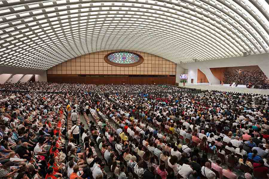 Christ’s love is stronger than hatred, pope says at audience August 20, 2025By Carol Glatz Catholic News Service Filed Under: News, Vatican, World News VATICAN CITY (CNS) — Jesus’ love and forgiveness do not deny the truth of pain and betrayal, but they do prevent evil from having the last word, Pope Leo XIV said. “To forgive does not mean to deny evil, but to prevent it from generating further evil,” the pope said Aug. 20 at his weekly general audience in the Vatican’s Paul VI Audience Hall. “It is not to say that nothing has happened, but to do everything possible to ensure that resentment does not determine the future,” he said. Visitors fill the Paul VI Audience Hall at the Vatican for Pope Leo XIV’s weekly general audience Aug. 20, 2025. (CNS photo/Lola Gomez) Continuing his series of talks about Jesus’ final days, the pope looked specifically at “one of the most striking and luminous gestures in the Gospel,” when Jesus offers a morsel of bread to Judas during the Last Supper, knowing full well that his disciple is about to betray him. “It is not only a gesture of sharing: it is much more; it is love’s last attempt not to give up,” Pope Leo said. “The key to understanding Christ’s heart,” he said, is to realize that his love “does not cease in the face of rejection, disappointment, even ingratitude.” “His love is stronger than hatred,” he said. The pope said Jesus recognizes that “his love must pass through the most painful wound, that of betrayal. And instead of withdrawing, accusing, defending himself, he continues to love: he washes the feet, dips the bread and offers it” to all his disciples, including Judas. Jesus is not ignoring what is happening, he said. Rather, he has understood “that the freedom of the other, even when it is lost in evil, can still be reached by the light of a meek gesture, because he knows that true forgiveness does not await repentance, but offers itself first, as a free gift, even before it is accepted.” Judas accepts the morsel of bread, but does not understand its meaning, and “Satan entered him,” the pope said. “That morsel is our salvation, because it tells us that God does everything — absolutely everything — to reach us, even in the hour when we reject him.” “Jesus, with the simple gesture of offering bread, shows that every betrayal can become an opportunity for salvation if it is chosen as a space for a greater love,” he said. “It does not give in to evil, but conquers it with good, preventing it from extinguishing what is truest in us: the capacity to love.” “Jesus’ love does not deny the truth of pain, but it does not allow evil to have the last word,” he said. “This is the mystery Jesus accomplishes for us, in which we, too, at times, are called to participate.” “We, too, experience painful and difficult” moments, such as when there is disappointment or when “someone has hurt or betrayed us,” the pope said. “The temptation is to close ourselves up, to protect ourselves, to return the blow.” “But the Lord shows us the hope that another way always exists,” he said, and that the faithful can “respond with the silence of trust. And that we can move forward with dignity, without renouncing love.” “Let us ask today for the grace to be able to forgive,” he said. “As Jesus teaches us, to love means to leave the other free — even to betray — without ever ceasing to believe that even that freedom, wounded and lost, can be snatched from the deception of darkness and returned to the light of goodness.” “Even if the other does not accept it, even if it seems to be in vain, forgiveness frees those who give it: it dispels resentment, it restores peace, it returns us to ourselves,” he said. Pope Leo spent nearly an hour and a half greeting visitors and pilgrims in the audience hall, including special guests, sports teams, newlyweds and the infirm. He greeted several families with small children, holding their newborns and posing for a family photo. He then headed to St. Peter’s Basilica to greet those who could not fit in the large audience hall and blessed people who were waiting in the parking area outside the hall. Because of the high temperatures outside, the general audience was being held in two parts — in the hall and in the basilica — so people would not have to be under the hot sun. The pope greeted the faithful in the basilica in English, Spanish and Italian and reminded them of the theme of forgiveness in his main catechesis. “Let us all learn to pardon,” he said in English. “Because to pardon one another is to build a bridge of peace. And we must pray for peace, which is so necessary in our world today, a peace which only Jesus Christ can give us.” Read More Vatican News Though Nicaea is a ruin, its Creed stands and unites Christians, pope says A little leaven can do great things, pope tells Turkey’s Catholics Catholic filmmaker investigates UFO mysteries at the Vatican Tennessee teen’s letter to Pope Leo brings a reply with gift of special rosary blessed by him Pope arrives in Turkey giving thanks, preaching peace Lebanese long for peace ahead of Pope Leo’s visit Copyright © 2025 Catholic News Service/U.S. Conference of Catholic Bishops Print