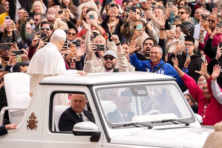 Church’s unity comes from faith in Christ and from love, pope says March 11, 2026By Josephine Peterson Catholic News Service Filed Under: Conflict in the Middle East, Feature, News, Vatican, World News VATICAN CITY (CNS) –The Catholic Church is made up of diverse people who are united by their faith in Christ and are called to welcome all of humanity, Pope Leo XIV said during his weekly general audience. “Its unifying principle is not a language, a culture, an ethnicity, but faith in Christ,” he said in St. Peter’s Square March 11. Continuing his series of reflections on the Second Vatican Council, the pope focused on the Dogmatic Constitution “Lumen Gentium,” which describes the Church as the “People of God.” Pope Leo XIV greets visitors and pilgrims from the popemobile while riding around St. Peter’s Square at the Vatican before his weekly general audience March 11, 2026. (CNS photo/Lola Gomez) The Church is the assembly of “all those who in faith look upon Jesus,” he said, united not by nationality or culture but by their shared faith in Christ. Pope Leo said this understanding is rooted in the Bible, pointing to God’s covenant with Abraham and the people of Israel, which prepared the way for the new covenant established through the death and resurrection of Jesus. The pope said love is the law that governs relationships within the Church, as believers receive and experience it through Jesus. Through Christ, believers from every nation are united in faith, he said. The Church is the people of God who “draw their existence from the body of Christ and who are themselves the body of Christ.” Rather than turning inward, the pope said, the Church must remain open to everyone. “Unified in Christ, Lord and Savior of every man and woman, the Church can never turn inwards on herself, but is open to everyone and is for everyone,” he said. In a world marked by conflict and division, Pope Leo added, the diversity of the Church is a sign of hope. “It is a great sign of hope — especially in our times, marked by so many conflicts and wars — to know that the Church is a people in which women and men of different nationalities, languages and cultures live together in faith,” he said. Before greeting Italian-speakers, the pope said he was close to the Lebanese people “in this moment of grave trial,” following the death of Father Pierre El-Rahi. The Maronite priest was killed in an Israeli bombing of southern Lebanon March 9. The pope said his funeral was to be held March 11 in Al-Qlayaa, a Christian village. “In Arabic, ‘Adrachi’ means shepherd. Father Pierre was a true shepherd who always remained close to his people with the love and sacrifice of Jesus, the Good Shepherd,” he said in Italian. “As soon as he heard that some parishioners had been wounded in a bombing, without hesitation, he ran to help them.” Before the audience, Pope Leo met privately with Cardinal Dominique J. Mathieu, Archbishop of Tehran and Isfahan, Iran. The Belgian cardinal, who is a member of the Franciscans, arrived in Rome March 8 after being evacuated along with every member of the Italian Embassy, where he is based. During the general audience, Pope Leo asked for prayers of peace in Iran and throughout the Middle East, above all for the many civilian victims and innocent children. “May our prayer be a comfort to those who suffer and a seed of hope for the future,” he said. Read More Vatican News Vatican releases synod report on women’s role in Church leadership Pope Leo bestows title of ‘monsignor’ on USCCB’s general secretary Pope Leo XIV accepts resignation of Iraqi Cardinal Louis Sako Pope Leo XIV urges Chicago students to be ‘co-workers for peace with Christ’ Jesus is close by, so just open your eyes, Pope Leo tells young people Pope urges peace, warns about wider Middle East conflict Copyright © 2026 Catholic News Service/U.S. Conference of Catholic Bishops Print