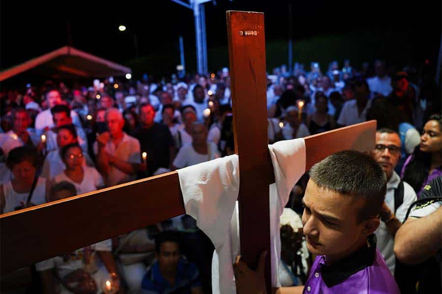 Colombia’s bishops condemn terrorist attacks that ‘rocked the country’ August 25, 2025By OSV News OSV News Filed Under: Bishops, News, World News Colombia’s bishops expressed their outrage after at least 18 people died and more than 40 were injured after two attacks in Colombia attributed to different dissident factions of the former FARC guerrilla group. Bishops decried as “brutal” the “wave of violence that rocked the country,” with the Archdiocese of Cali, Colombia’s most populous city where the attacks happened, “urgently” calling for justice and peace. Six people died when a cargo vehicle with explosives detonated near a Colombian Aerospace Force base, causing 71 further injuries, according to the mayor’s office, as reported by Reuters. A member of the Catholic Church carries a cross during a candlelight vigil in Cali, Colombia, Aug. 24, 2025, in honor of victims of a cargo vehicle bomb attack near a Colombian Aerospace Force base, attributed to FARC dissident groups, that caused multiple casualties. (OSV News photo/Jair F. Coll, Reuters) Hours earlier, the agency reported, a National Police Black Hawk UH-60 helicopter participating in a coca leaf crop eradication operation was shot down in the municipality of Amalfi, in the department of Antioquia, leaving 12 officers dead. The Colombian bishops’ conference, in an Aug. 22 statement signed by its leaders, including the conference president, Archbishop Francisco Javier Múnera Correa of Cartagena, condemned the terrorist attacks and extended its “sentiments of solidarity” to the families of the victims “at this time when violence continues to knock on the doors of Colombian homes, sowing pain and despair.” The bishops made a direct appeal to all parties involved in the conflict to abandon “the path of death and walk the path of respect for life, which dignifies and makes true human development possible.” Colombian President Gustavo Petro attributed the attacks to dissident groups of the former FARC guerrilla movement, which refused to accept the 2016 peace accord aimed at ending the decades-long conflict that has claimed over 450,000 lives. The country’s bishops called on state authorities to intensify security and comprehensive care for the civilian population, placing the protection of citizens as an unavoidable priority. Archbishop Luis Fernando Rodríguez Velásquez of Cali said in his Aug. 21 statement that the country “once again feels the thunderous sound of bomb explosions that take human lives.” In his message, he expressed a shared grief of the country experienced by decades of terrorist violence: “We are pained by the loss of human lives. … We are pained by the feeling of uncertainty and fear. … We are pained by the social and ethical breakdown.” The archbishop emphasized that this is the fourth terrorist attack in Cali in 2025, a situation that is compounded by the scourge of kidnapping in the Valle del Cauca. Kidnappings of priests and religious are also not uncommon in Colombia. Archbishop Rodríguez was forceful in his demand for justice: “Impunity cannot become a common occurrence. We demand that justice be vigorously pursued so that those who plan, decide, and carry out these criminal acts are brought to justice.” A candlelit vigil was held in Cali Aug. 24 in honor of victims of a cargo vehicle bomb attack near the aerospace base. Pope Leo XIV called for a worldwide day of fasting and prayer on Aug. 22 “asking the Lord to grant us peace and justice and to dry the tears of those who suffer because of the armed conflicts underway.” In keeping with the request, the archbishop of Cali celebrated a noon Mass for peace at the Metropolitan Cathedral of St. Peter the Apostle on Aug. 22. He also urged people to “implore the peace of the Risen Lord” in all the parishes of his archdiocese. In their statement, the bishops’ conference asked Colombian faithful to entrust to “the intercession of Mary, Queen of Peace,” the “difficult moment we are going through as a nation,” and “the joint search for solutions that will make it possible to rekindle hope through the paths of forgiveness, reconciliation, and peace.” Read More World News Though Nicaea is a ruin, its Creed stands and unites Christians, pope says A little leaven can do great things, pope tells Turkey’s Catholics Diocese of Hong Kong mourns over 100 victims of devastating apartment complex fire Tennessee teen’s letter to Pope Leo brings a reply with gift of special rosary blessed by him Catholic filmmaker investigates UFO mysteries at the Vatican ‘The Sound of Music’ at 60 Copyright © 2025 OSV News Print