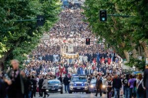 ROME (CNS) — When Catholics carry the Eucharist through the streets, “we are not doing this to show off or to flaunt our faith” but to invite others to share in the life that Jesus gives by making himself a gift, Pope Francis said.