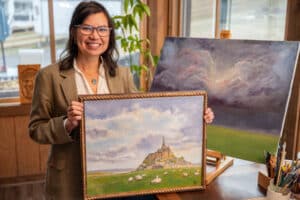 She vividly remembers being in eucharistic adoration when she believes Jesus gave her an image of a relative who had just been diagnosed with breast cancer. She was told to paint a picture of her and Jesus together.