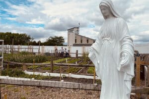 Bees, the latest addition near the garden, will produce honey in the future. This spring, three beehives, producing about 240,000 bees, were added under the management of parishioner Dean Clark, a studied beekeeper.