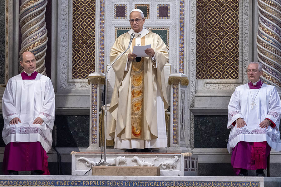 Dig deep, work patiently to keep church on solid foundation, pope says November 10, 2025By Cindy Wooden Catholic News Service Filed Under: Feature, News, Vatican, World News ROME (CNS) — In many ways, the Catholic Church is always a “construction site” where God is constantly shaping its members who must dig deep and work diligently but patiently, Pope Leo XIV said. The construction site is “a beautiful image that speaks of activity, creativity and dedication, as well as hard work and sometimes complex problems to be solved,” the pope said as he celebrated Mass at Rome’s Basilica of St. John Lateran Nov. 9, the feast of the basilica’s dedication in the fourth century. Pope Leo XIV gives his homily from the “cathedra” or bishop’s chair at Rome’s Basilica of St. John Lateran Nov. 9, 2025, the feast of the basilica’s dedication. (CNS photo/Pablo Esparza) The basilica is the pope’s cathedral as bishop of Rome and is referred to as “the mother of all churches.” Standing at the “cathedra” or bishop’s chair, Pope Leo preached about the basilica as “a sign of the living church, built with chosen and precious stones on Christ Jesus, the cornerstone.” He also spoke about the feast day when he returned to the Vatican for the midday recitation of the Angelus prayer. “We are the church of Christ, his body, his members called to spread his Gospel of mercy, consolation and peace throughout the world, through that spiritual worship that must shine forth above all in our witness of life,” he told people gathered to pray with him in St. Peter’s Square. “So often, the frailties and mistakes of Christians, together with many clichés and prejudices, prevent us from grasping the richness of the mystery of the church,” he said. However, the holiness of the church “is not dependent upon our merits, but on the ‘gift of the Lord, never retracted,’ that continues to choose ‘as the vessel of its presence, with a paradoxical love, the dirty hands of men,'” the pope said, quoting Pope Benedict XVI’s 1968 book, “Introduction to Christianity.” In his homily at the basilica, Pope Leo asked the congregation to consider the foundations of the church they were standing in. “If the builders had not dug deep enough to find a solid base on which to construct the rest, the entire building would have collapsed long ago or would be at risk of doing so at any moment,” he said. “Fortunately, however, those who came before us laid solid foundations for our cathedral, digging deep with great effort before raising the walls that welcome us, and this makes us feel much more at ease.” As members of and laborers in the church, he said, Catholics today also “must first dig deep within ourselves and around ourselves before we can build impressive structures. We must remove any unstable material that would prevent us from reaching the solid rock of Christ.” The church and its members must constantly return to Christ and his Gospel, the pope said, “otherwise we risk overloading a building with heavy structures whose foundations are too weak to support it.” Building up the church of Christ is a time-consuming labor requiring hard work and patience, he said. Part of that work, the pope said, is being humble enough to allow God to work on each member, the “living stones” who make up the church. “When Jesus calls us to take part in God’s great project, he transforms us by skillfully shaping us according to his plans for salvation,” Pope Leo said. “This implies an uphill journey, but we must not be discouraged. Instead, we should continue with confidence in our efforts to grow together.” Pope Leo ended his homily by making a special request of the community that celebrates Mass there regularly, but also of all churches and parishes. “Care for the liturgy, especially here at the See of Peter, must be such that it can serve as an example for the whole people of God. It must comply with the established norms, be attentive to the different sensibilities of those participating and keep with the principle of wise inculturation.” He asked that the Masses “remain faithful to the solemn sobriety typical of the Roman tradition, which can do so much good for the souls of those who actively participate in it.” Read More Vatican News Pope Leo’s childhood home in Chicago suburb now a historic landmark Unity, dialogue, respect: On first trip, pope highlights paths to peace Pope Leo is first pontiff to go to St. Charbel’s tomb; visit is source of ‘great joy’ for Lebanon Pope tells reporters dialogue is always the answer to tense situations Choose the way of peace, pope says as he leaves Lebanon Lebanese have what is needed to build a future of peace, pope says Copyright © 2025 Catholic News Service/U.S. Conference of Catholic Bishops Print