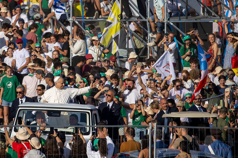 Don’t settle for less; God is waiting to transform your life, pope tells youth August 4, 2025By Carol Glatz Catholic News Service Filed Under: Feature, Jubilee 2025, News, Vatican, World News, Youth Ministry ROME (CNS) — The fullness of life depends on how much one joyfully welcomes and shares in life while also living with a constant yearning for those things that only come from God, Pope Leo XIV told young people. “Aspire to great things, to holiness, wherever you are. Do not settle for less. You will then see the light of the Gospel growing every day, in you and around you,” he said in his homily during Mass concluding the Jubilee of Youth Aug. 3. Pope Leo XIV waves to the crowd from the popemobile as he arrives to celebrate the Mass closing the Jubilee of Youth in Rome’s Tor Vergata neighborhood Aug. 3, 2025. (CNS photo/Pablo Esparza) The outdoor Mass, held in Rome’s Tor Vergata neighborhood on the outskirts of the city, marked the culmination of a week-long series of events for the Jubilee of Youth. More than 1 million people were estimated to be gathered across the 130 acres that had been prepared for the morning Mass, the prayer vigil the evening before, and for the hundreds of thousands of people sleeping overnight. After touching down by helicopter less than 12 hours after leaving the evening vigil, the pope rode in the popemobile throughout the open areas — dotted with tents and tarps, and filled with young people, cheering, waving their nation’s flag, and sometimes launching at him shirts and gifts. “Good morning!” he said in six languages from the massive stage set up for the Mass. “I hope you all rested a little bit,” he said in English. “We will shortly begin the greatest celebration that Christ left us: his very presence in the Eucharist.” He said he hoped the concluding Mass would be “a truly memorable occasion for each and every one of us” because “when together, as Christ’s church, we follow, we walk together, we live with Jesus Christ.” In his homily during the Mass, the pope again highlighted the importance of the Eucharist, as “the sacrament of the Lord’s total gift of himself to us.” It is Christ, the Risen One, he said, “who transforms our lives and enlightens our affections, desires and thoughts.” “We are not made for a life where everything is taken for granted and static, but for an existence that is constantly renewed through the gift of self in love,” he said. A priest distributes Communion to a young woman during a Mass closing the Jubilee of Youth in Rome’s Tor Vergata neighborhood Aug. 3, 2025. (CNS photo/Pablo Esparza) Much like a field of flowers, where each small, delicate stem may dry out, become bent and crushed, he said, each flower is “immediately replaced by others that sprout up after them, generously nourished and fertilized by the first ones as they decay on the ground. This is how the field survives: through constant regeneration.” “This is why we continually aspire to something ‘more’ that no created reality can give us; we feel a deep and burning thirst that no drink in this world can satisfy,” he said. “Knowing this, let us not deceive our hearts by trying to satisfy them with cheap imitations!” Pope Leo urged the young people to listen to that yearning and “turn this thirst into a step stool, like children who stand on tiptoe, in order to peer through the window of encounter with God,” who has been “waiting for us, knocking gently on the window of our soul.” “It is truly beautiful, especially at a young age, to open wide your hearts, to allow him to enter, and to set out on this adventure with him towards eternity,” he said. Speaking briefly in English, the pope said, “There is a burning question in our hearts, a need for truth that we cannot ignore, which leads us to ask ourselves: what is true happiness? What is the true meaning of life? What can free us from being trapped in meaninglessness, boredom and mediocrity?” “Buying, hoarding and consuming are not enough,” he said. The fullness of existence “has to do with what we joyfully welcome and share.” “We need to lift our eyes, to look upwards, to the ‘things that are above,’ to realize that everything in the world has meaning only insofar as it serves to unite us to God and to our brothers and sisters in charity, helping us to grow in ‘compassion, kindness, humility, meekness and patience,’ forgiveness and peace, all in imitation of Christ,” he said. Evoking St. John Paul II’s words during the XV World Youth Day prayer vigil held in the same spot 25 years ago, Pope Leo reminded the young people that “Jesus is our hope.” “Let us remain united to him, let us remain in his friendship, always, cultivating it through prayer, adoration, Eucharistic communion, frequent confession, and generous charity, following the examples of Blessed Pier Giorgio Frassati and Blessed Carlo Acutis, who will soon be declared saints,” he said. Wishing everyone “a good trip home,” he encouraged the young people to “continue to walk joyfully in the footsteps of the Savior, and spread your enthusiasm and the witness of your faith to everyone you meet!” Read More Vatican News Though Nicaea is a ruin, its Creed stands and unites Christians, pope says A little leaven can do great things, pope tells Turkey’s Catholics Tennessee teen’s letter to Pope Leo brings a reply with gift of special rosary blessed by him Catholic filmmaker investigates UFO mysteries at the Vatican Pope arrives in Turkey giving thanks, preaching peace Lebanese long for peace ahead of Pope Leo’s visit Copyright © 2025 Catholic News Service/U.S. Conference of Catholic Bishops Print