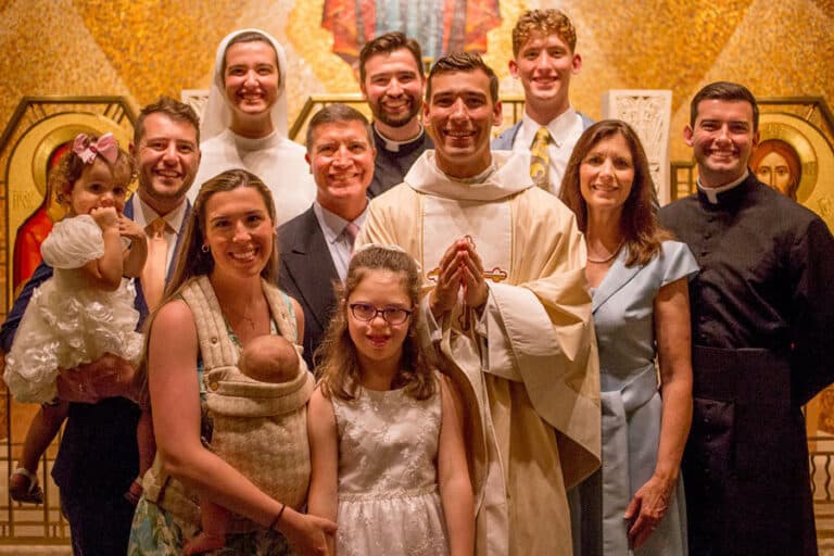 Drawing on own experience, families say homeschooling cultivates priestly vocations November 6, 2025By Katie Yoder OSV News Filed Under: News, Vocations, World News Father Danny Morrison’s first memories of a Catholic priest take place in his childhood home. When he was as young as 4 years old, he saw priests playing sports with his family or joining them for dinner. “It struck me to see a man with so much joy,” he recalled. “Then, from that young age, to see the same man on the altar, wearing funny robes, and yet there’s a sense of reverence — of, whoa, there’s something really profound going on.” He added: “That, I think, was the first spark of seeing the priesthood, and not even necessarily knowing what it was, but desiring it.” Father Danny, parochial vicar at Little Flower Parish in Bethesda, spoke with OSV News ahead of National Vocation Awareness Week Nov. 2-8. The 26-year-old priest entered the seminary after receiving a homeschool education and was ordained in June. His family and three other Catholic homeschooling families with sons who discerned a vocation to the priesthood spoke about the impact of homeschooling on cultivating priestly vocations. The four Morrison siblings with religious vocations stand together: from left to right, Father James Morrison, Dominican Sister Mary Sophia Morrison, Father Danny Morrison and Father Nicholas Morrison. (OSV News photo/Morrison family) Of Father Danny and his six siblings, four discerned a religious vocation, including three to the priesthood. They belong to a documented increase in priests who were homeschooled. “More than one in ten responding ordinands (15%) reported being home schooled,” according to a report released earlier this year by the Center for Applied Research in the Apostolate, or CARA, at Georgetown University in Washington that drew from a national survey of seminarians scheduled for ordination in 2025. The co-author of the report, Sister Thu T. Do, a religious sister of the Lovers of the Holy Cross of Hanoi and a research associate at CARA, said CARA began tracking homeschooling among ordinands in 2006. At that time, only 3 percent of ordinands reported being homeschooled. “By 2025, that figure had risen to 15 percent, marking a 400 percent increase over the period,” she said in emailed comments. “On average, 9 percent of ordinands have been homeschooled over the past decade.” Drawing from their own experiences, the homeschooling families who spoke with OSV News agreed that homeschooling cultivates priestly vocations. They spoke about the beauty of living out their faith in every aspect and the freedom and flexibility to pursue the sacraments regularly and prayer daily. Many of them invited priests into their homes and stressed the importance of being around priests. They also valued their homeschooling communities where they forged friendships with other families also striving for holiness. Laurie Kraemer, mother of Fathers Matthew and Timothy Kraemer, and Judy Miller, mother of Father Jayson Miller, belonged to the St. Joseph Pillar of Families Catholic Homeschool Support Group, based in Grand Forks, N.D., and the surrounding area. Including her sons, Kraemer counted eight alumni who either are priests or are on the path to priesthood. “You have more time and space to help the child to know what the faith is, to live it out and to ponder that call,” Kraemer, a mother of seven in Grand Forks, said of homeschooling. The Kraemers, like other homeschooling families, welcomed priests into their home, where they prayed and played games together. Kraemer remembered starting every school day with learning religion. They prayed the rosary, attended Holy Hours, and even traveled to events like the March for Life, a national pro-life event, in Washington. They embraced faith with their homeschool group, where they would do things like pray together in front of the Blessed Sacrament for a “half holy hour.” Laurie Kraemer and her husband, Phil, appear in a family photo with their seven children, including sons Father Matthew Kraemer, at left, and Father Timothy Kraemer, center. (OSV News photo/courtesy Kraemer family) Both Kraemer and Miller used some materials from Seton Home Study School, a Catholic homeschooling curriculum, they said. Along the way, they each spoke about how they and their families learned and grew in faith together. They weren’t perfect or the holiest people in the world, both of them said in separate interviews, but they strived to make sure their children knew the importance of faith and doing their best to live a Catholic lifestyle. “I think that what fosters vocations is the sincere and total effort to establish and live an authentic Catholic life in the home,” Miller, a mother of five in Lawton, North Dakota, said in emailed comments. “Over time, the children experience Catholic life as ‘normal and just how we do things.’ This requirement of time and effort is just less difficult to live out in the family that includes homeschooling as a natural part of the rhythm of their days.” Miller added: “Homeschooling is not the only way to have the time that is needed to live the Catholic life of prayer, liturgy, study, etc but it provides a very natural and flowing way to do so.” From Orangevale, California, Brian and Jeanne Condon spoke about homeschooling eight of their children, including Ben, a seminarian studying at St. Patrick’s Seminary in Menlo Park, California. They also strived to create a homeschooling environment where they lived out their faith. “We plant,” Jeanne said, “but God’s the one who causes the growth.” Jeanne, who did the majority of the homeschooling while Brian worked, called herself a relaxed homeschooler who followed British educator Charlotte Mason’s approach to homeschooling, which she described as embracing beautiful artwork and music, exploring nature and reading good books. Her goal, Jeanne said, was that th