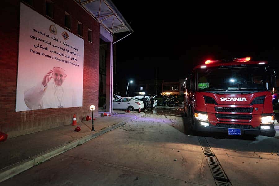 Drone strike on Iraqi Catholic church complex reopens old wounds March 5, 2026By Dale Gavlak OSV News Filed Under: Conflict in the Middle East, News, World News The Catholic community in northern Iraq has been shaken by the attack of an explosive drone hitting the Chaldean Catholic complex in Ankawa, outside of Irbil. “We thank God for the safety of everyone,” Chaldean Catholic Archbishop Bashar M. Warda of Irbil said following the assault on the vital community complex which hosts a chapel, convent, and housing for the Chaldean Church as no casualties were reported in the attack. “We thank God that the damage is material. The chapel of this housing complex has been damaged completely,” Archbishop Warda told OSV News by phone from Ankawa. A poster of Pope Francis is seen as people gather March 4, 2026, near debris from a drone that fell onto a building near the airport in Irbil, Iraq, amid the U.S.-Israeli war with Iran. (OSV News photo/Khalid al Mousily, Reuters) “But right from the beginning when the war (with Iran) started and there were these kinds of missiles and rockets, the whole fears and wounds of the past came back again,” he said. For many Chaldeans, who were targeted and displaced by the Islamic State group a decade before, this new violence reignites painful memories for Iraq’s Christian community. The area is roughly 60 to 90 miles west of the Iranian border. “When we meet people at the daily Mass and after the Mass, everyone is not just concerned,” he said, his voice full of emotion. “But you can see the fear because of the instability. Until when? Until when?” the archbishop asked. He recounted the hardships of the many conflicts that have confused Iraq over the recent decades and ensuing sectarian violence and displacement. “It’s just continuing in that sense. And no matter what the Church is trying to deal with — all of these consequences of all of the violence and wars, there is always a surprise, always a new scenario, a new story to be told,” the cleric told OSV News. “Yes, we keep strong in faith and hope. We have to have that hope and we are building from that hope,” Archbishop Warda said. “But yes, we cannot deny this feeling that the fears, worries and concerns are there. You can feel it.” The apartment complex built by the Knights of Columbus had been largely evacuated several days earlier due to its proximity to the Irbil International Airport, the archdiocese said. “We thank God that no injuries were reported among the residents of the complex, nor among the security forces,” the March 4 statement said. “Security personnel and civil defense teams promptly arrived at the scene to take the necessary measures and assess the extent of the damage,” it continued. The building housed workers for the archdiocese as well as providing shelter for young families displaced by brutal violence carried out by Islamic State militants in 2014 and subsequent years. “We are now in a time once again where we pray for the solidarity and support from our brothers and sisters around the world, that these times of violence and war will come to an end, and that our suffering people may yet have a chance to return to lives of peace and dignity,” Archbishop Warda said. Read More Conflict in the Middle East Cardinal Parolin questions whether missiles, bombs are solution to Iranian people’s aspirations Prayer, unity essential as conflict spreads to Gulf States, says apostolic vicar of region Amid U.S. and Israel-Iran war, Palestinian sisters find refuge in prayer at Jerusalem hospital Lebanese archbishop: Innocents are ‘paying the price’ of Middle East war Congress expected to consider war powers resolution after US, Israel strikes on Iran Bishops, Christian leaders call for peace, urge diplomacy as Middle East conflict escalates Copyright © 2026 OSV News Print