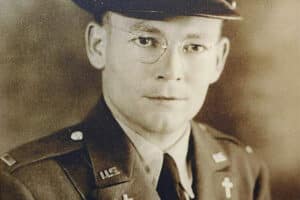Father Lafleur, the base’s chaplain watched as Japanese planes dropped bombs and strafed the U.S. airfield. Seeing wounded soldiers, the chaplain jumped into action.