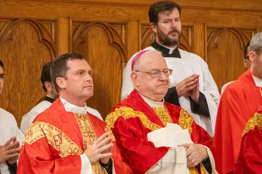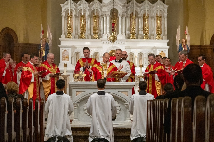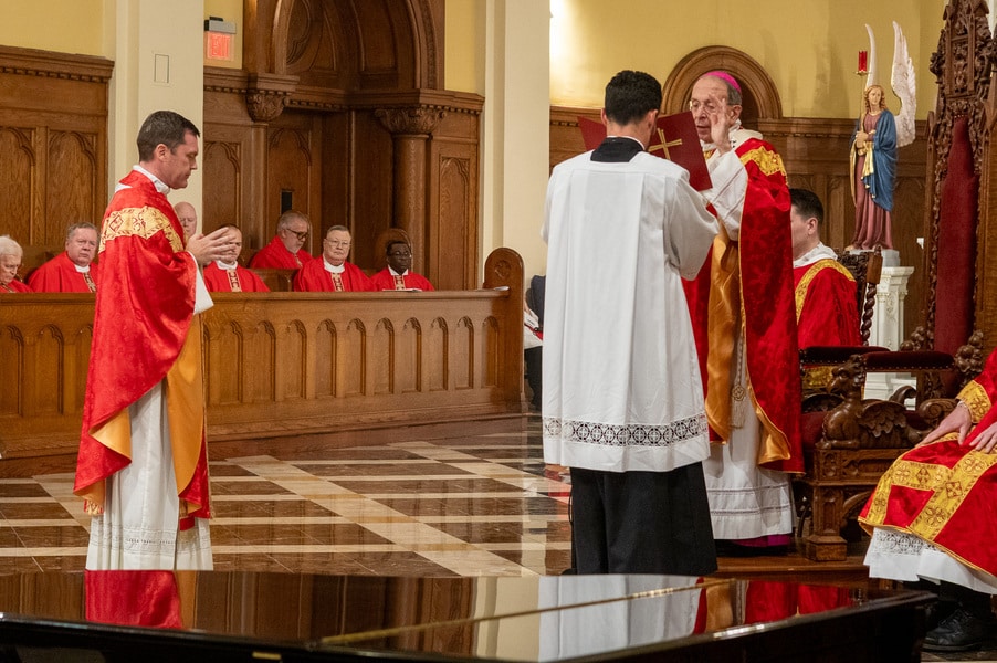 Father Michael M. Romano installed as rector of Mount St. Mary’s Seminary October 31, 2025By Dominic Wilkinson Special to the Catholic Review Filed Under: Colleges, Feature, Local News, News, Vocations, Western Vicariate EMMITSBURG – Standing before Archbishop William E. Lori with dozens of seminarians looking on, Father Michael M. Romano’s voice rang clear and resolute. Father Michael M. Romano, left, prays moments after making a profession of faith and taking the oath of fidelity during his Oct. 28, 2025, installation Mass as rector of Mount St. Mary’s Seminary in Emmitsburb. He is surrounded by Bishop Dennis J. Sullivan (right) and Archdiocese of Baltimore seminarians Ryan Gerbes (left) and Kevin McCarthy. (Dominic Wilkinson/Special to the Catholic Review) Proclaiming his profession of faith and taking an oath of fidelity during his Oct. 28 installation Mass as rector of Mount St. Mary’s Seminary, the New Jersey priest’s promises echoed through the historic Immaculate Conception Chapel. A public declaration before God and the community he now leads, the solemn commitment symbolized Father Romano’s full embrace of Catholic teaching and his pledge of fidelity and faith. Joining him in professing faith and taking the oath of fidelity were new theology faculty members Father Joseph O’Connor, Monsignor Charles Mangan, Dominican Father Gabriel O’Donnell and Dr. Marie Nuar. Archbishop Lori, an alumnus and current chancellor of Mount St. Mary’s Seminary, focused his homily on the feast of Ss. Simon and Jude, highlighting the apostles’ gift of faith. The archbishop, who chose to use the Rite of Installation of a Pastor since a seminary rector serves as pastor of that community, urged each person to be a “zealot of the Gospel” like Simon and a “herald of hope” like Jude. “Your new rector, Father Romano, is an experienced formator and as a priest who serves the church with dedication, effectiveness and joy,” he said. “In his life, he models the formation, which he and the seminary faculty provide.” Archbishop William E. Lori leads the Rite of Installation during an Oct. 28, 2025, Mass at Mount St. Mary’s Seminary, installing Father Michael M. Romano as rector of the Emmitsburg seminary. (Dominic Wilkinson/Special to the Catholic Review) Mount St. Mary’s – the largest Catholic seminary in the United States – draws approximately 25 dioceses nationwide and beyond, including the Archdiocese of Baltimore. Ordained in 2007, Father Romano served in two parishes in Camden, N.J., and as chaplain at Paul VI High School in Haddon Township, N.J., from 2009 to 2013. He became director of vocations and seminarians for the Camden diocese in 2011, a post he held until 2019. After five years as priest-secretary to the bishop of Camden, he moved to Rome in 2019 to serve as coordinator of admissions at the Pontifical North American College. The installation Mass, which featured solemn chant led by the seminary’s Schola Cantorum, was attended by the seminary community and was concelebrated by Bishop Dennis J. Sullivan of Camden and Bishop Michael F. Burbidge of Arlington, Va., along with the seminary’s priest-faculty and the Mount St. Mary’s University chaplain. Father Romano arrived at Mount St. Mary’s Seminary in July 2025, succeeding Monsignor Andrew R. Baker. “It’s great to be in such a historic location, it’s the second oldest seminary in the country, the second oldest Catholic university in the country,” Father Romano told the Catholic Review. “It’s great to be on holy ground. It has become clear to me that over the summer and these months that this is a privileged place to live. It really is Our Lady’s Mountain and St. Joseph’s Valley.” Archbishop William E. Lori celebrates the Oct. 28, 2025, installation Mass for Father Michael Romano, rector of Mount St. Mary’s Seminary. (Dominic Wilkinson/Special to the Catholic Review) Seminarian Martin Jaquet of Our Lady of Victory in Arbutus described Father Romano as “very humble, very joyful and brings a lot of energy to the house.” “Father Romano has been a wonderful presence to the house, greeting us at lunch, at dinner, just being a very present rector,” Jaquet said. “It’s wonderful to see continuity between both rectors.” Father Diego Ruiz, Dean of Men at the seminary, noted that every leader brings distinct gifts and experience. “Father Romano has the heart of a servant leader and it is a great joy and honor to work with him,” he said. Monsignor McLean Cummings, Seminary Director of Spiritual Formation, added that “every new beginning brings something new and hopeful and everything’s been very auspicious so far.” Read More Local News Artist helps transform blight to beauty throughout Baltimore area Radio Interview: Advent and St. Nicholas Archbishop Lori announces clergy appointments, including pastor assignment and retirement Calvert Hall holds off Loyola Blakefield to claim a 28-24 victory in the 105th Turkey Bowl Tears and prayers greet St. Thérèse relics in Towson Mercy surgeons help residents get back on their feet at Helping Up Mission Copyright © 2025 Catholic Review Media Print