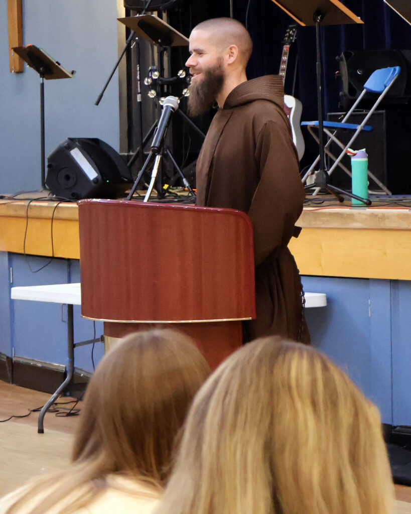 In a talk at St. Mary, Capuchin Franciscan Father Michael Herlihey noted in his home of Philadelphia, a maternity home was started for pregnant women who do not have places to live. In the last year and a half, 10 babies have been born – some of them to mothers who have had previous abortions.